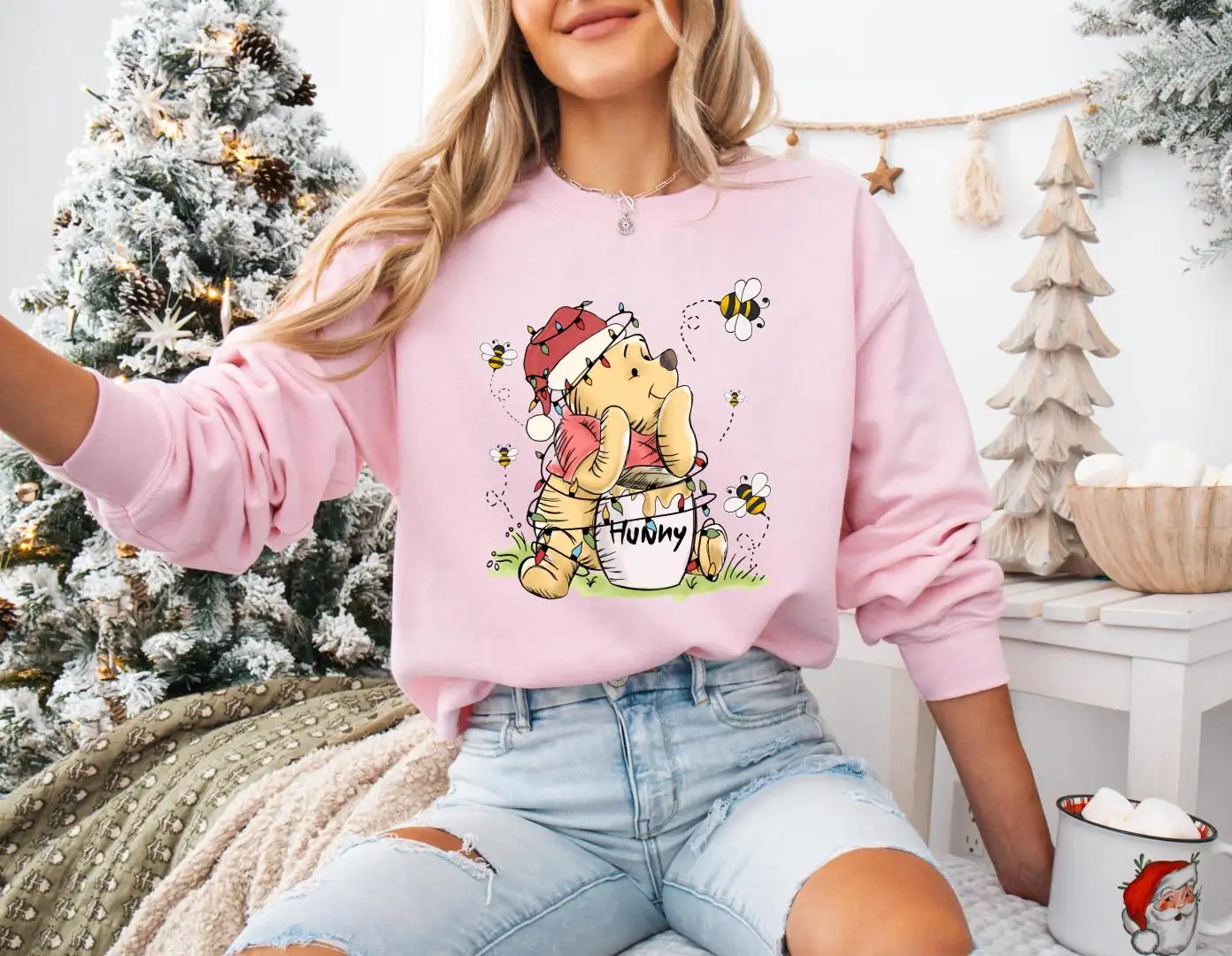 Disney Pooh Bear Christmas Mama Shirt, Mom Disneyland Holiday Sweatshirt, Bear Hunny Christmas Kids Gift Tee, Winnie The Pooh XMAS Hoodie