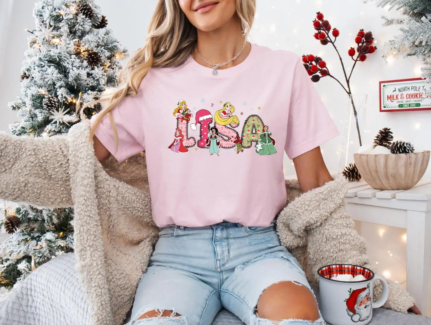 Disney Princess Christmas Shirt for Girls Holiday Party