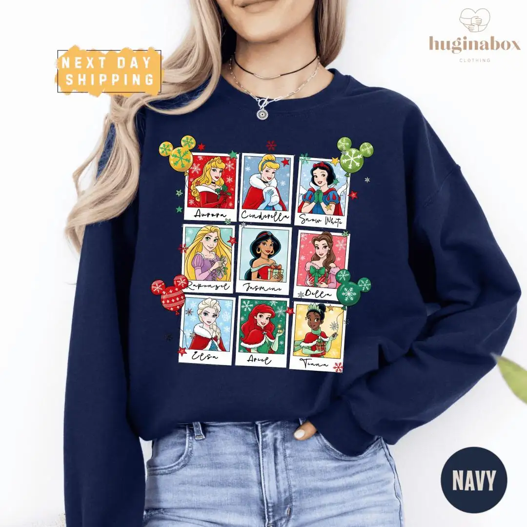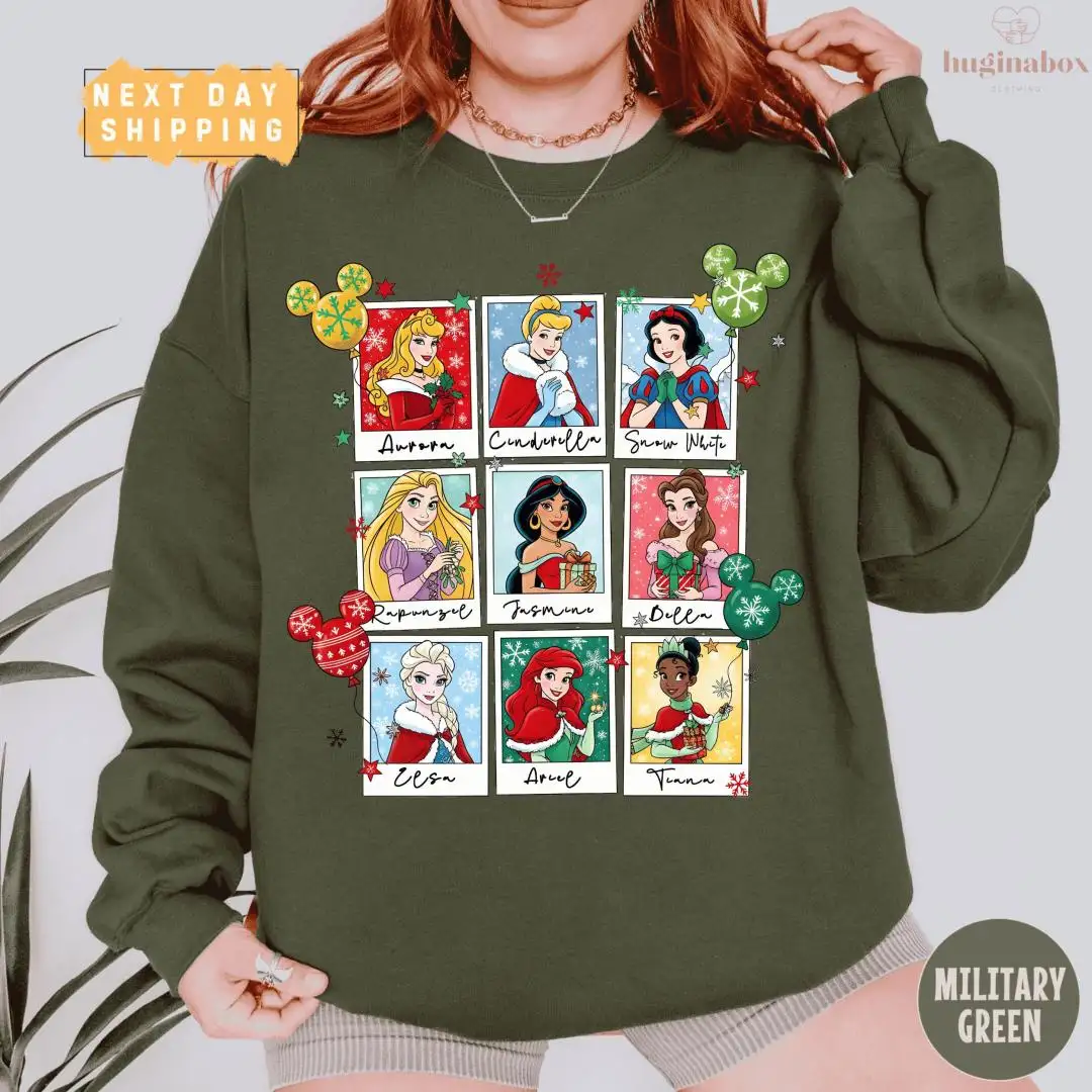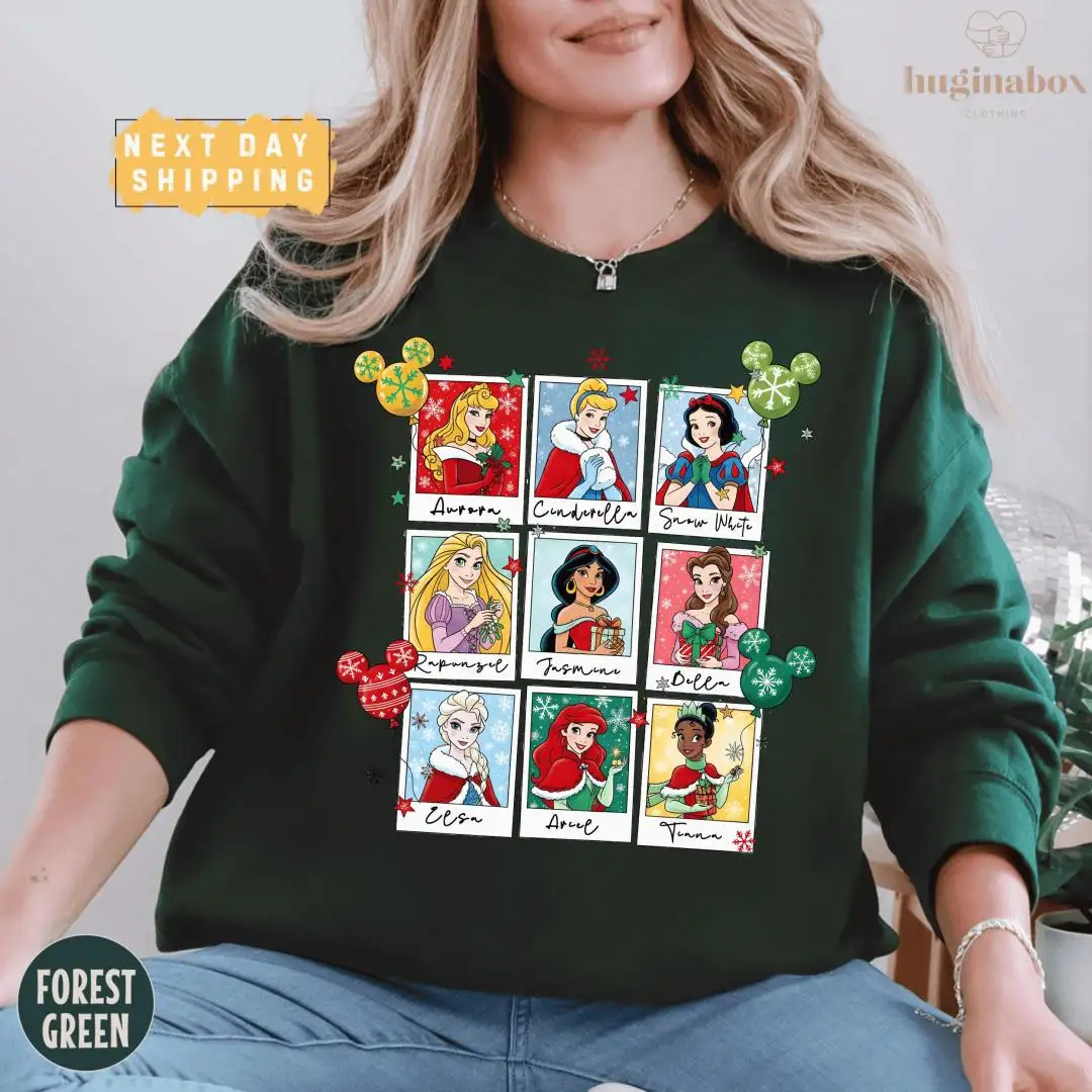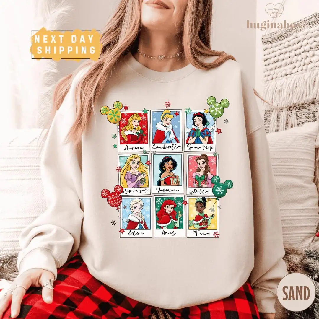 Disney Princess Christmas Shirt Polaroid Style Holiday Pullover