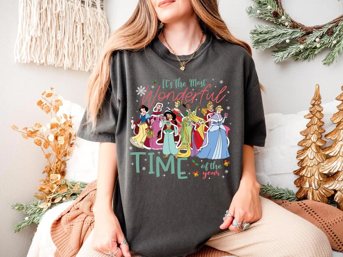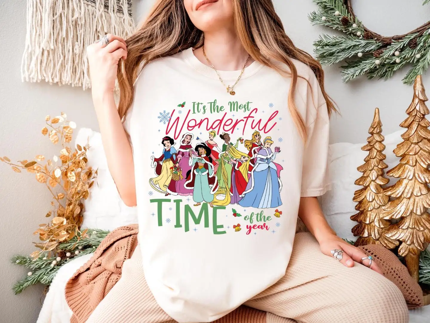 Disney Princess Christmas Shirt, Princess Xmas Girls Trip, Disneyland Christmas Party Hoodie, It's The Most Wonderfull Time Of The Year Tee