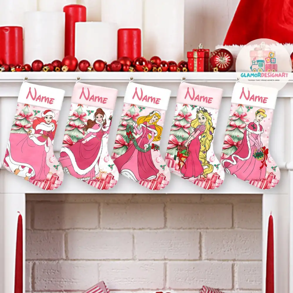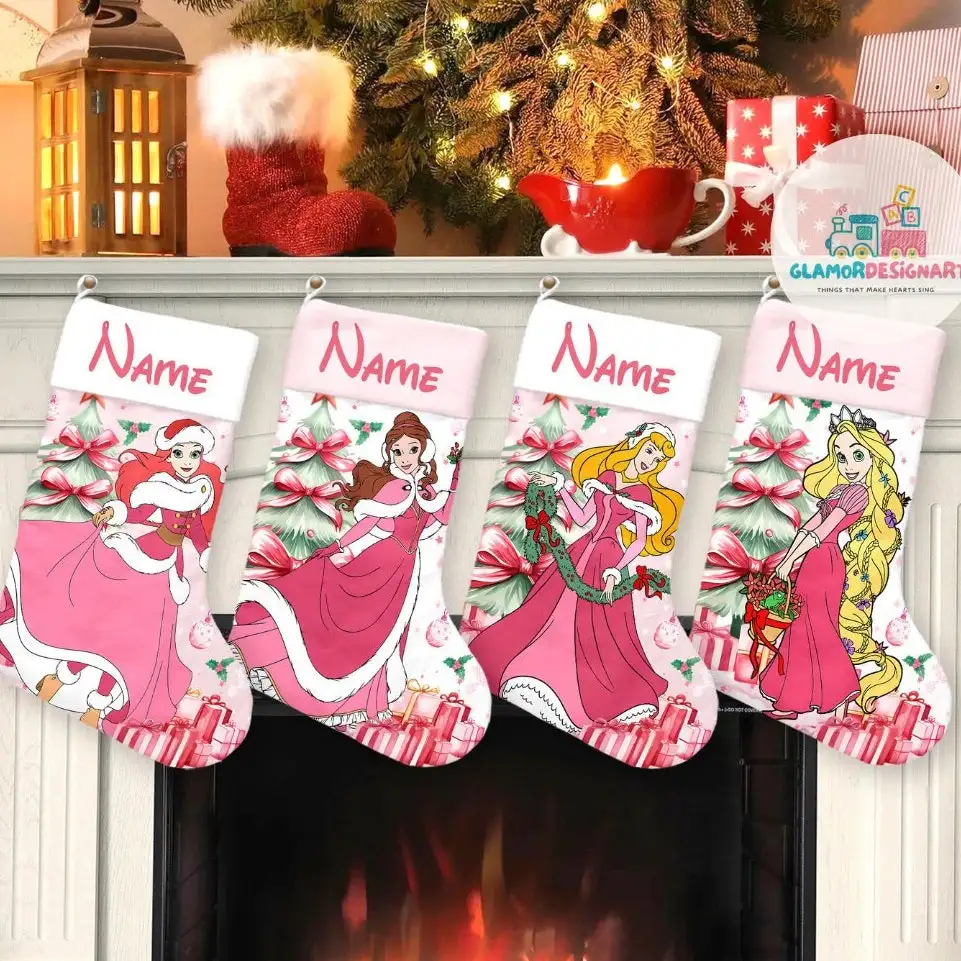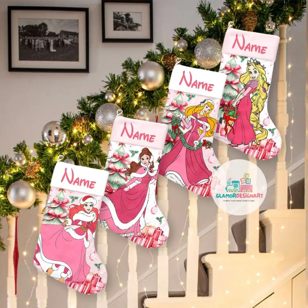 Disney Princess Christmas Stocking, Custom Name Stockings, Cartoon Movie Christmas Stockings, Characters Christmas Socks Home Decoration
