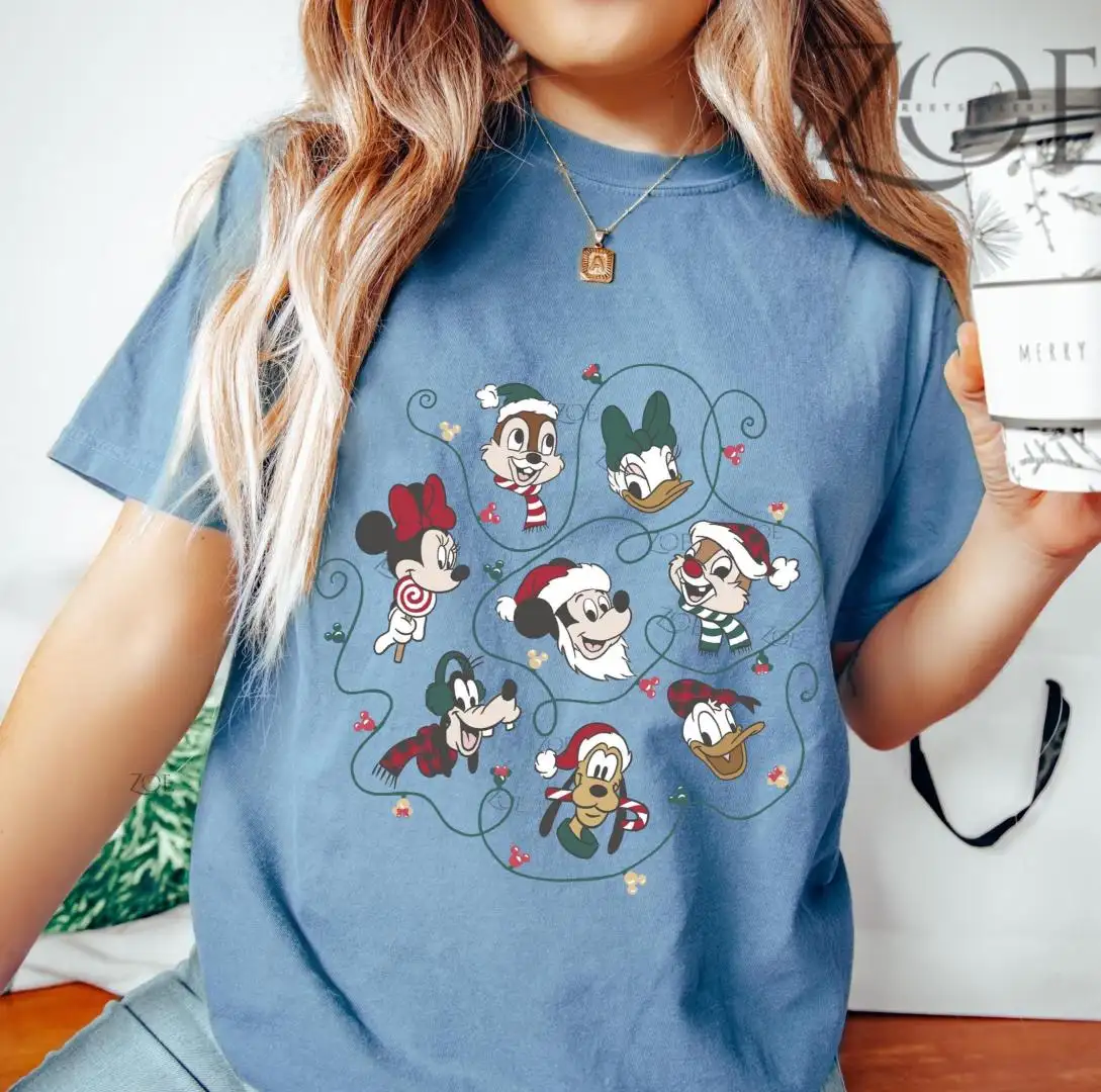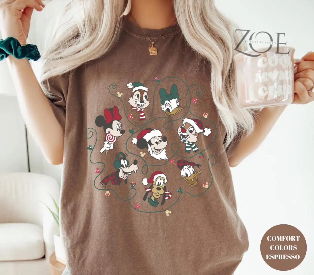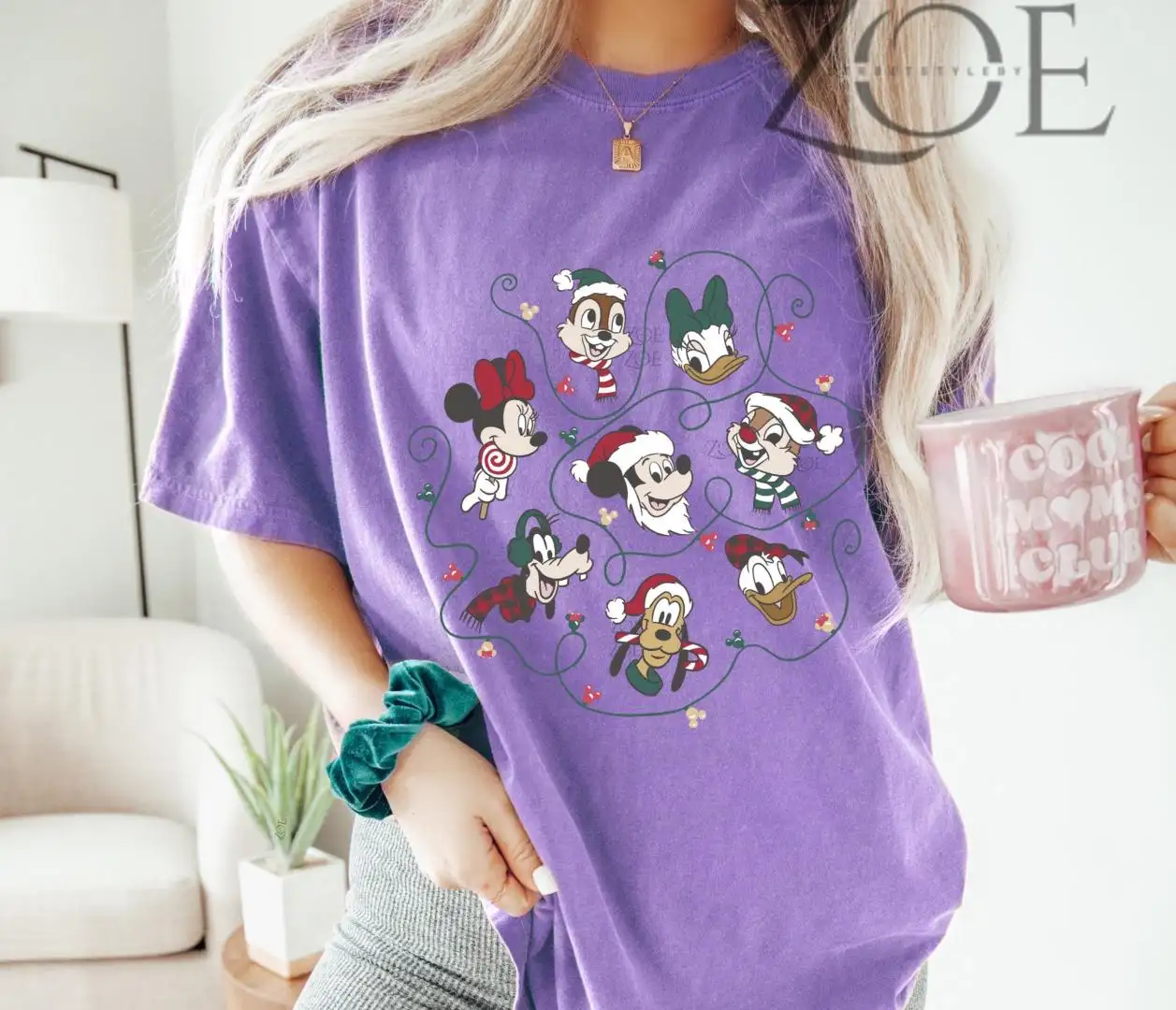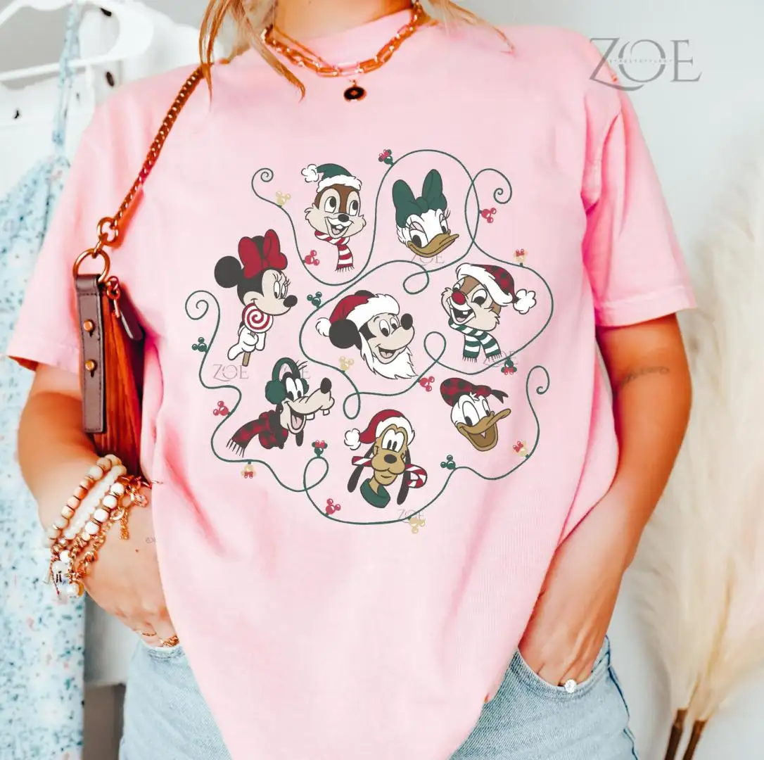 Disney Retro Mickey and Friends Christmas Lights Shirt, Mickey and Friends Shirt, Mickey's Very Merry Christmas Party 2025 Shirt