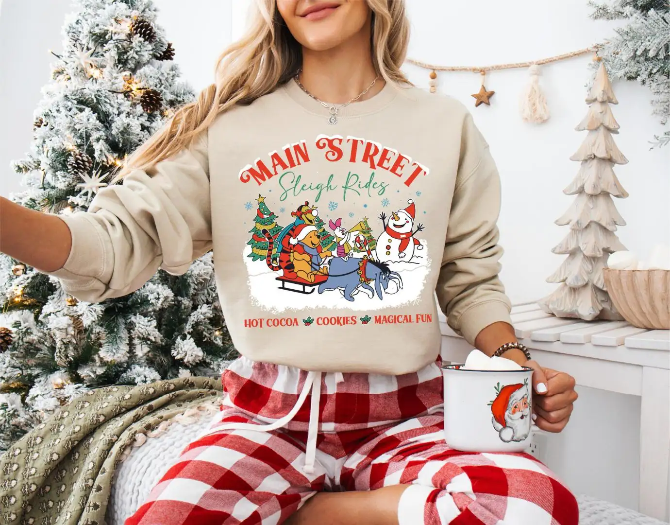 Disney Sleigh Rides Christmas Sweatshirt, Disney Family Vacation Tee, Winnie The Pooh Christmas Shirt, Christmas Gift T-Shirt