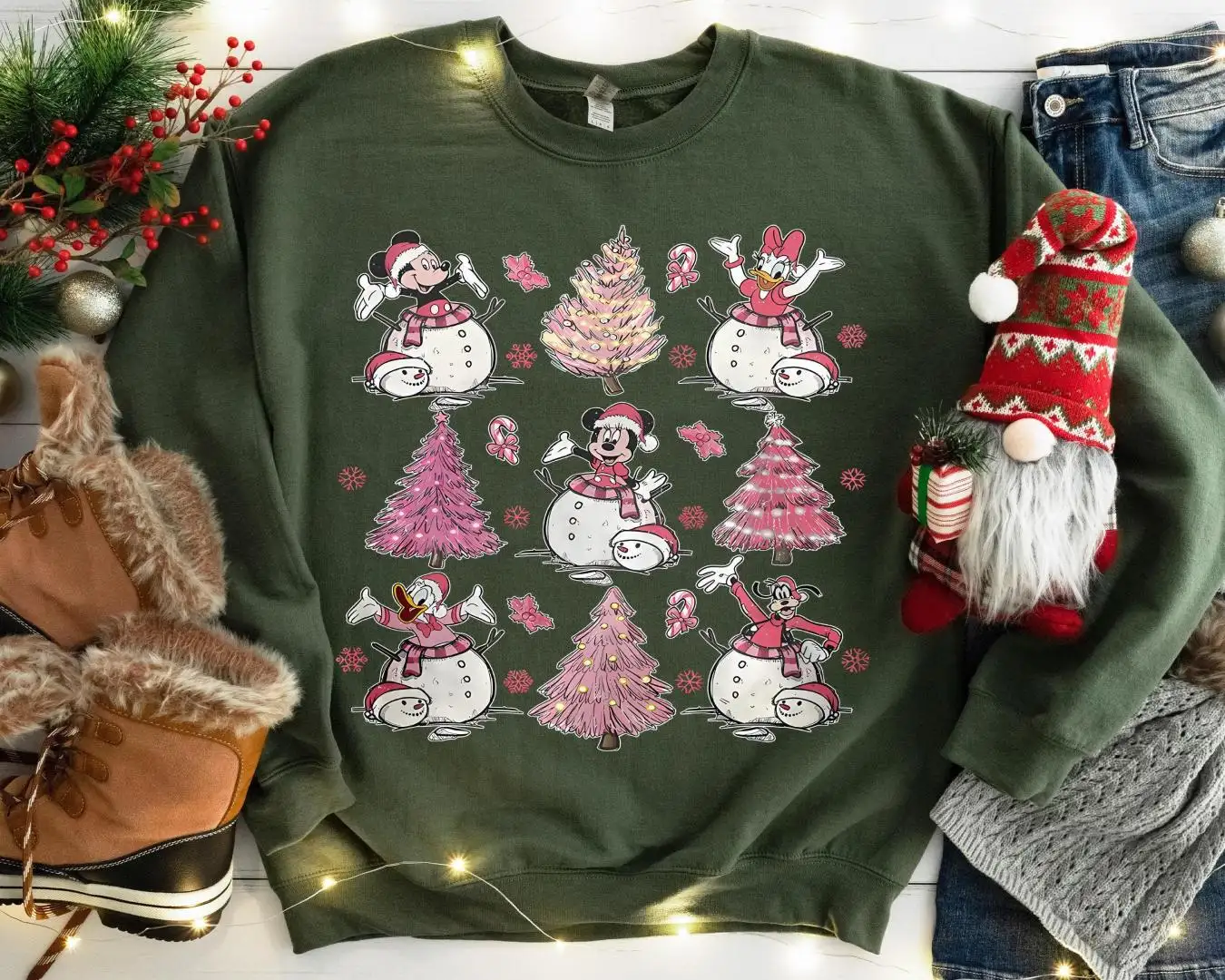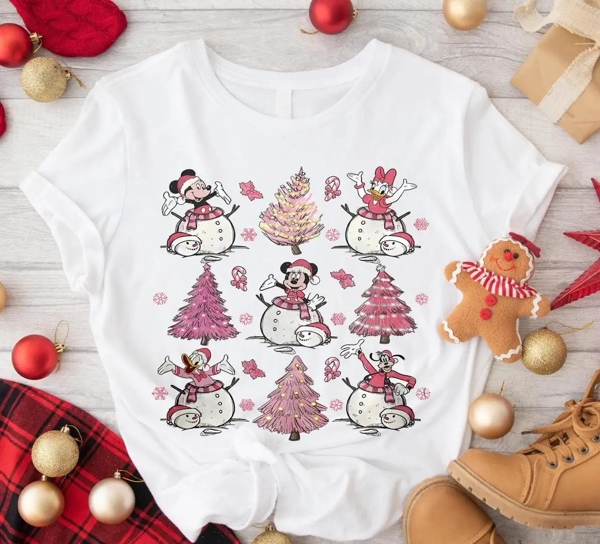 Review Disney Snowman Pink Xmas Shirt, Minnie Christmas Gift, Pink Xmas Tree Tee, Girls Disneyland Xmas Trip, Mickey Friends Christmas Shirt