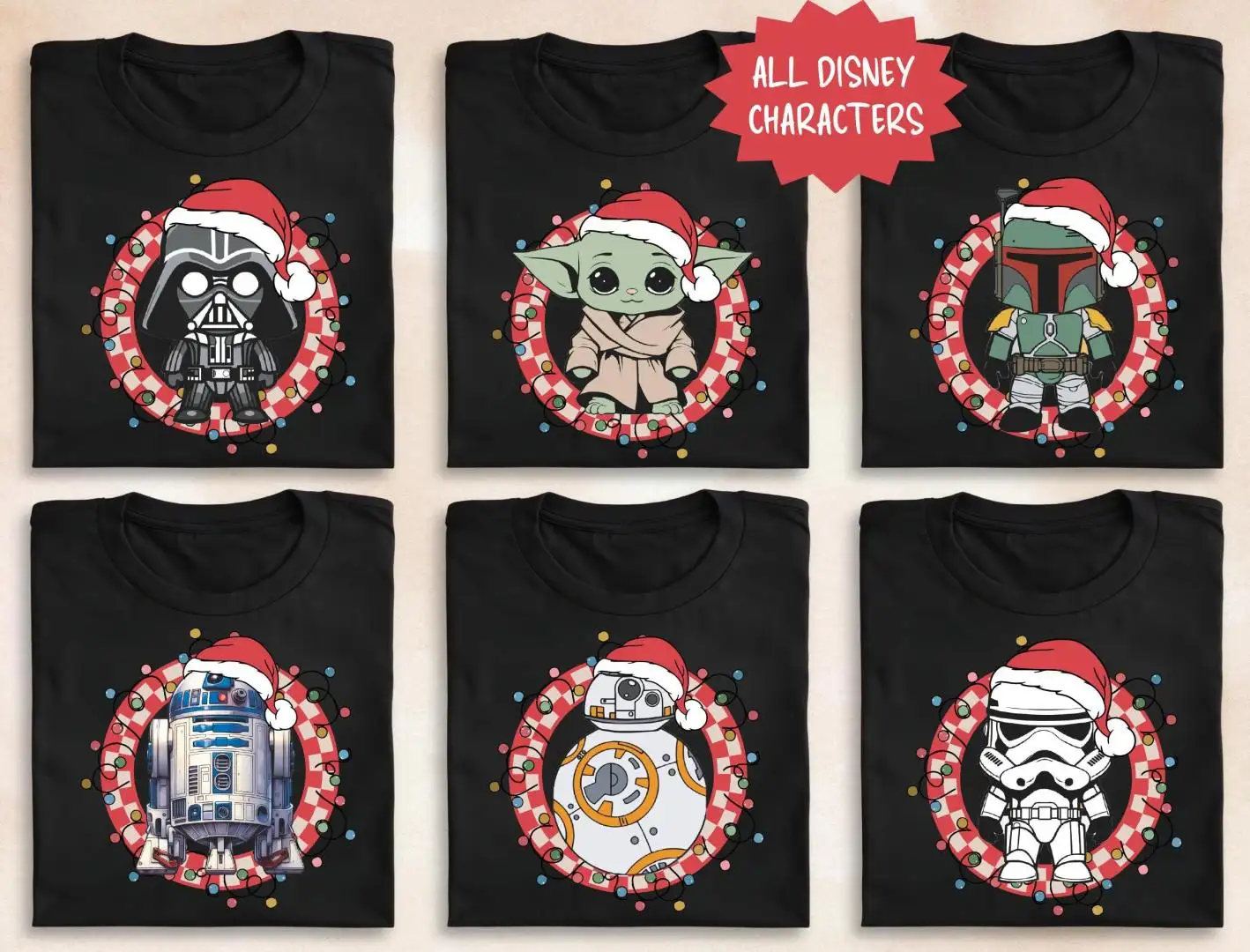Disney Star Wars Checkered Christmas Shirt, Disney Galaxy Edge Family Trip Christmas Sweater, Disney All Characters Matching Retro Xmas Tee,