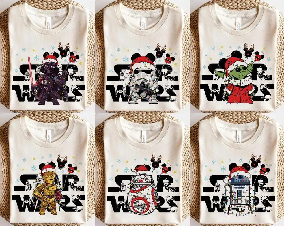 Disney Star Wars Family Christmas Shirts, Disney tee, Galaxy's Edge Christmas Holiday Gift Shirts, Santa Darth Vader R2-D2 C-3PO Xmas Tee