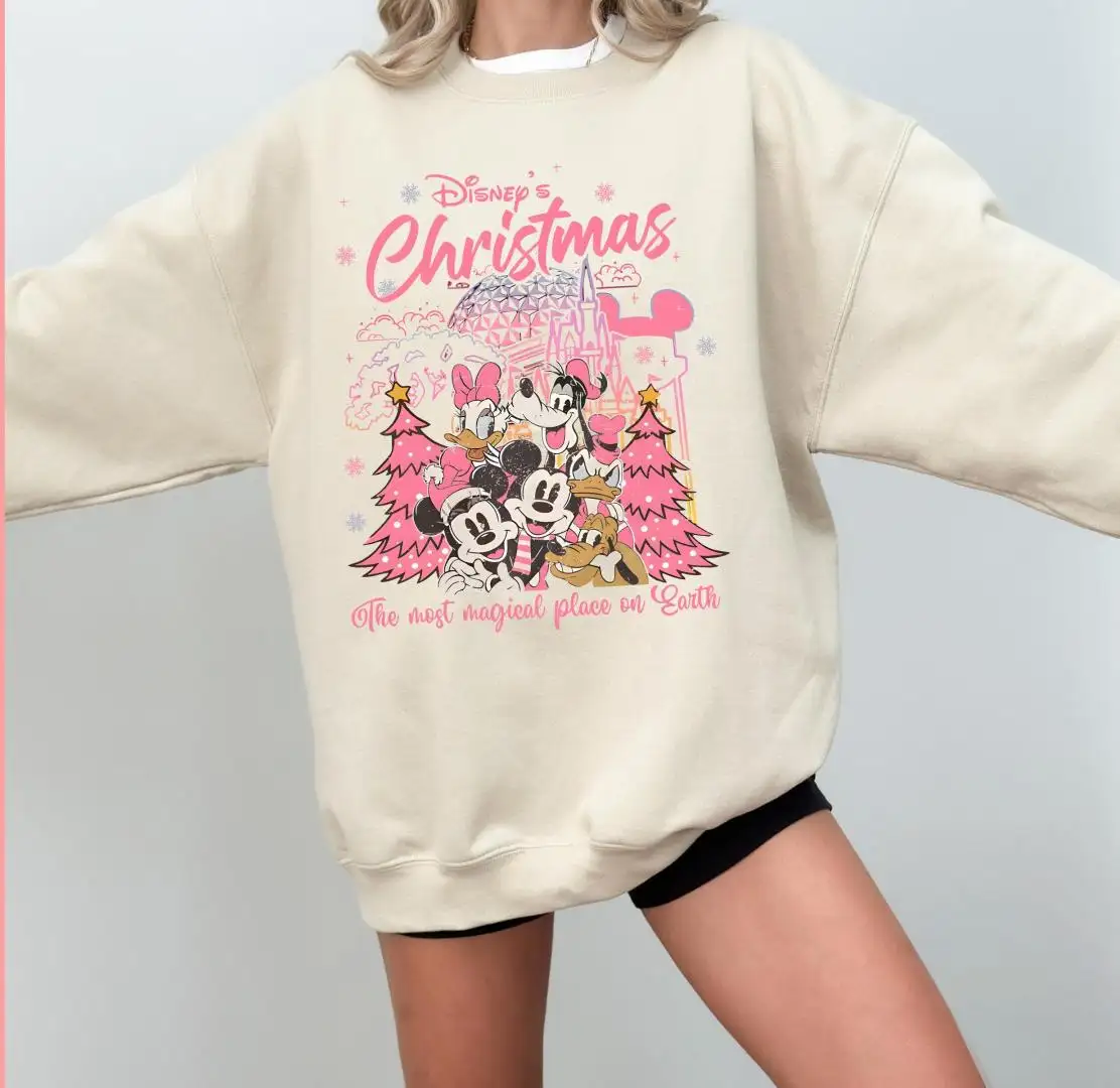 Review Disney The Most Magical Place on Earth Sweatshirt, Pink Christmas Squad, Retro Christmas Mickey And Friends Sweater, Christmas Tree Shirt