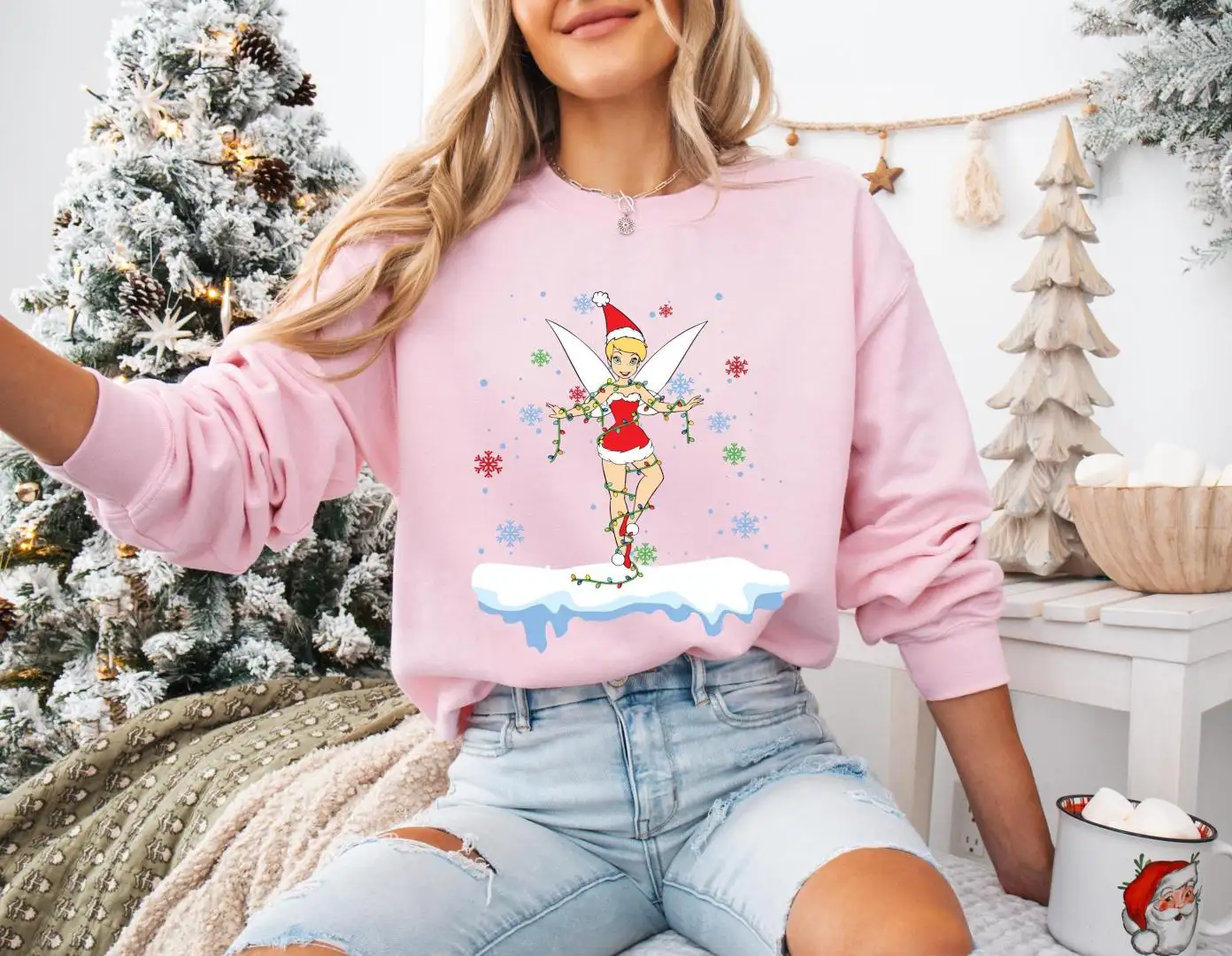 Disney Tinker Bell Christmas Shirt, Tinkerbell XMAS Tee, Fairy Girls Holiday Sweatshirt Disneyland Christmas Hoodie, Christmas Party Tees