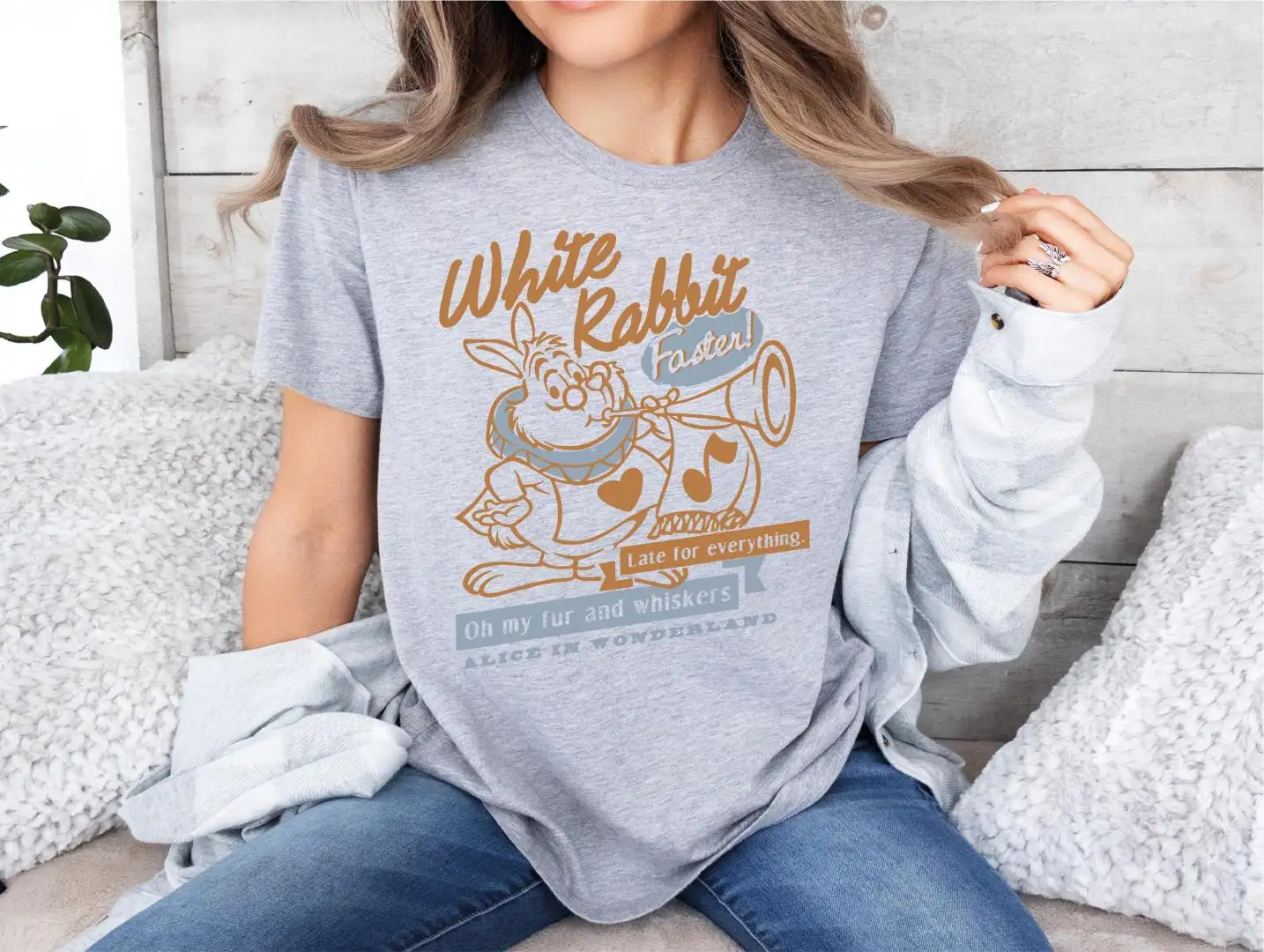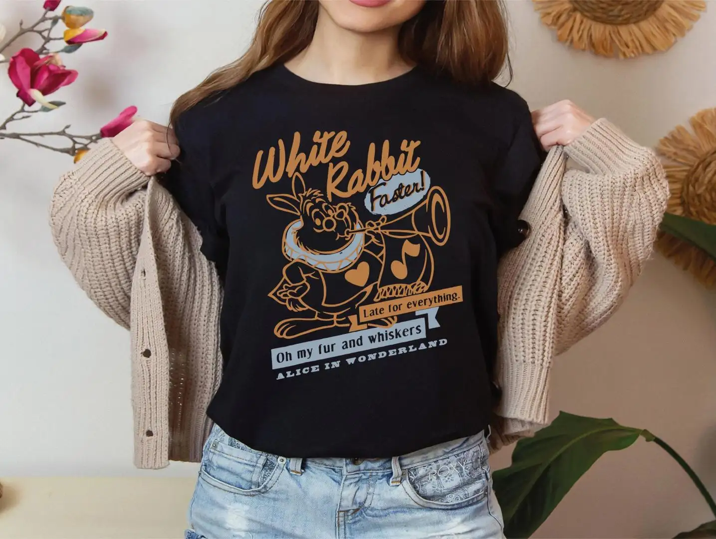 Disney White Rabbit Alice In Wonderland Late For Everything Shirt