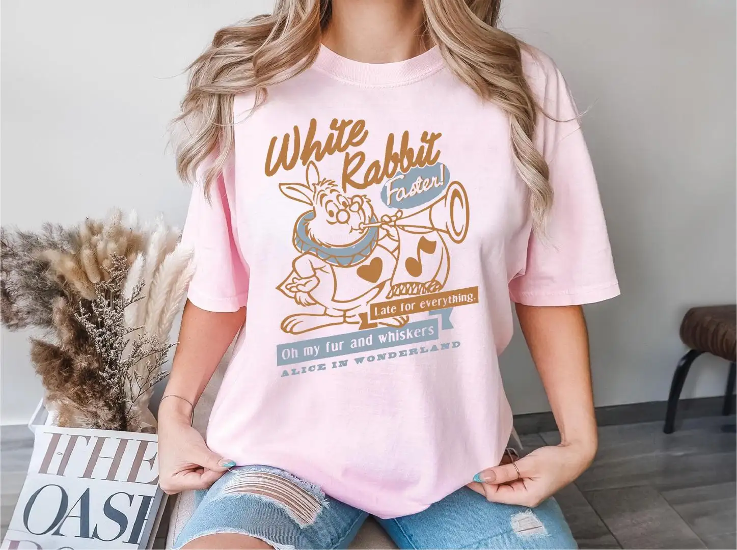 Review Disney White Rabbit Alice In Wonderland Late For Everything Shirt