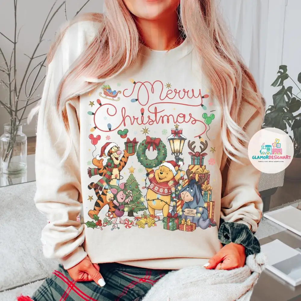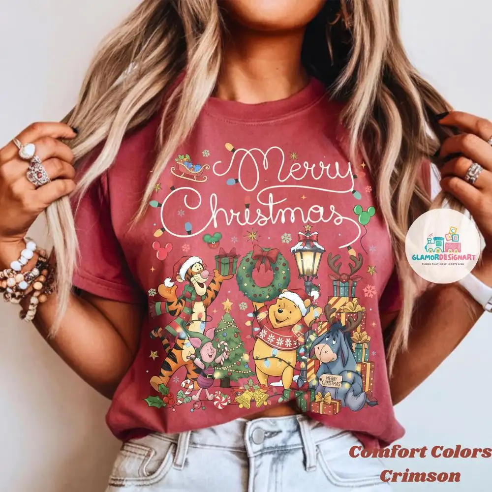 Disney Winnie the Pooh Christmas Comfort Colors Shirt, The Pooh Eeyore Tigger Piglet Christmas Sweatshirt, Disney Christmas Party Tee