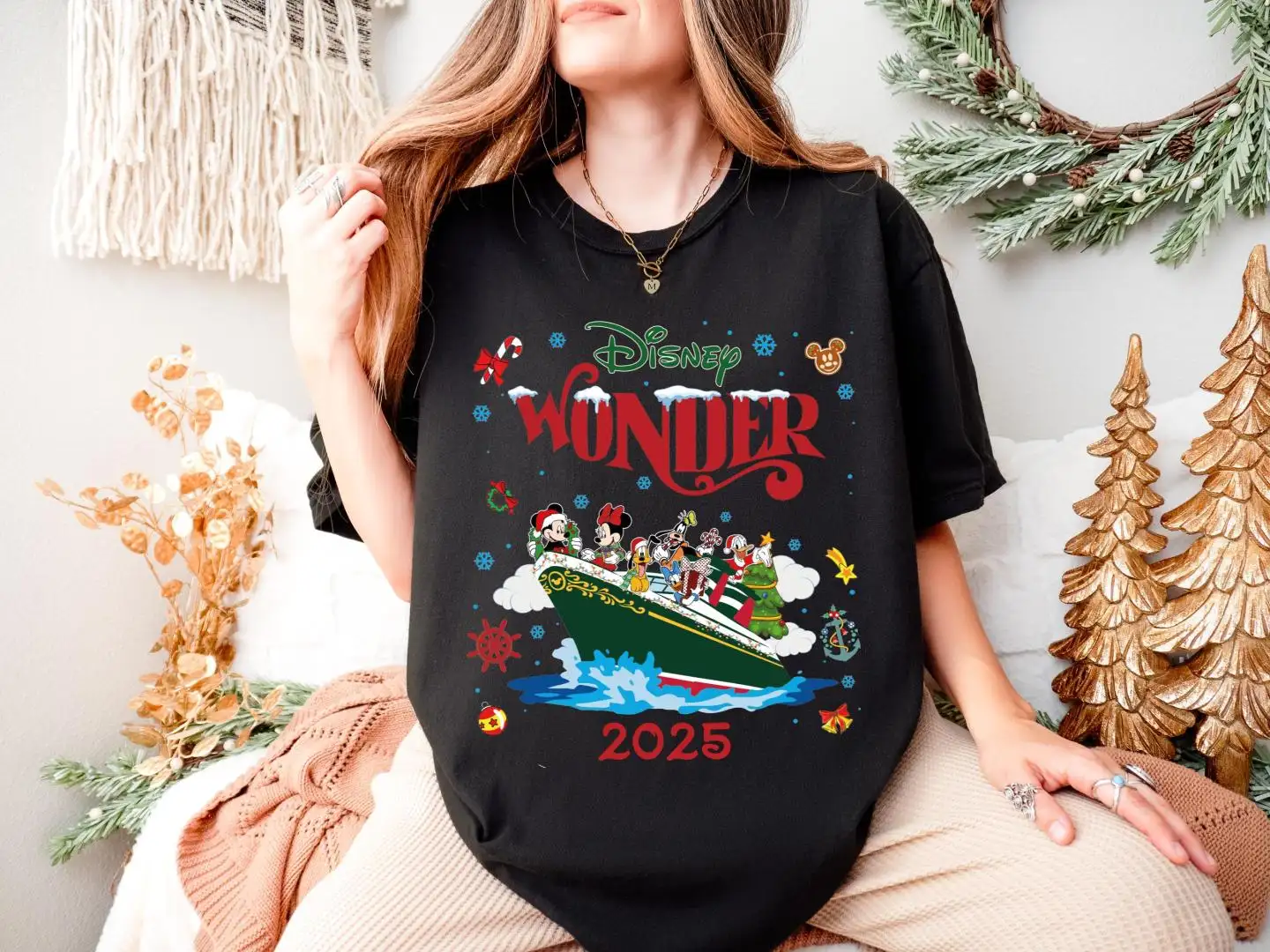 Disney Wonder Cruise Christmas 2025 Tee, Mickey And Friends Wonder Trip, Mickey's Very Merry Christmas, Disneyland Family Matching Xmas Tee