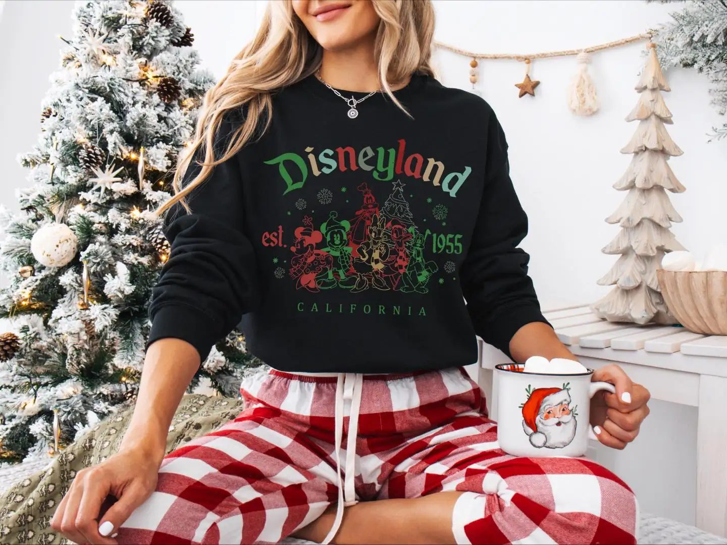 Review Disneyland Est. 1955 California Christmas Shirt, Mickey and Friends Christmas Tree Sweatshirt, Disneyland Family Christmas Trip Sweater