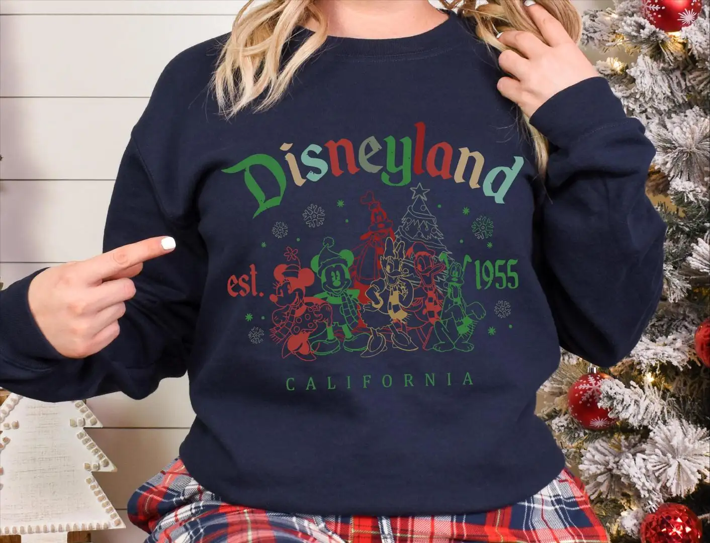 Disneyland Est. 1955 California Christmas Shirt, Mickey and Friends Christmas Tree Sweatshirt, Disneyland Family Christmas Trip Sweater