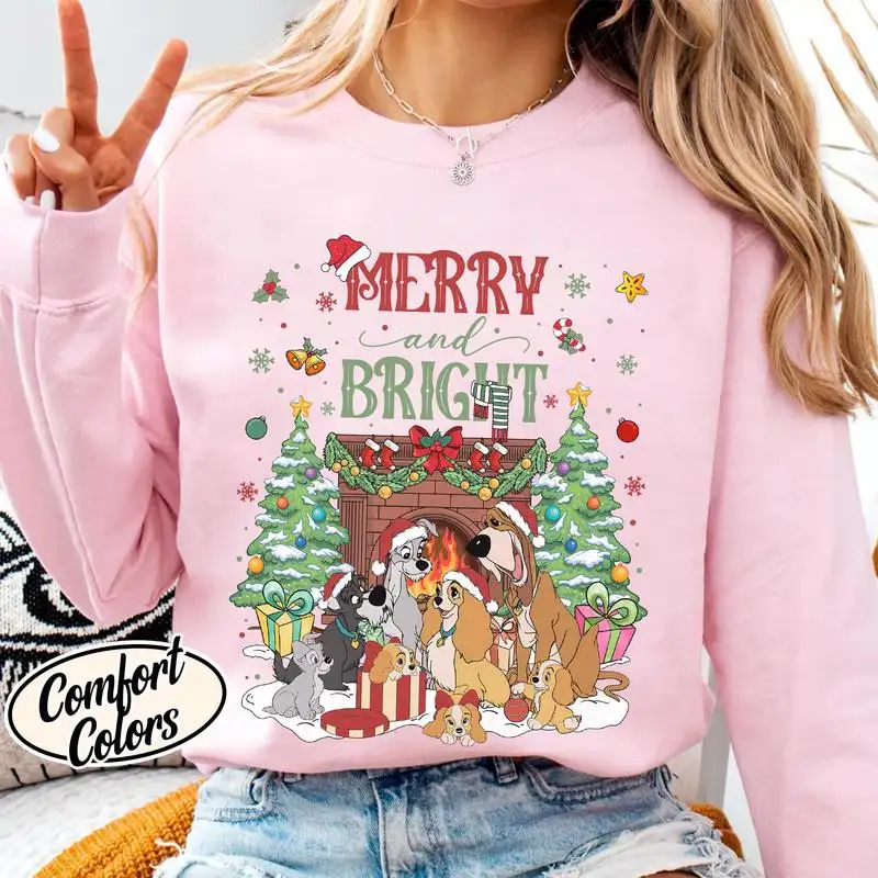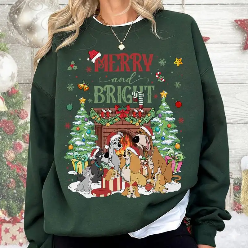 Disneyland Lady and The Tramp Christmas Shirt Merry and Bright Xmas Shirt Mickey's Very Merry Christmas Tee Disneyland Family Xmas Shirt 06