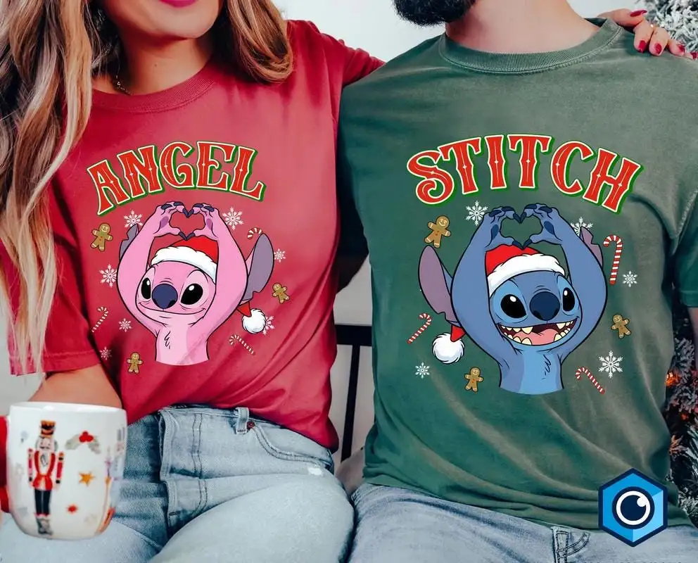 Disneyland Stitch And Angel Christmas Shirt Disneyland Couple Xmas Shirt Lilo And Stitch Xmas Matching Shirt Disneyland Family Christmas Tee