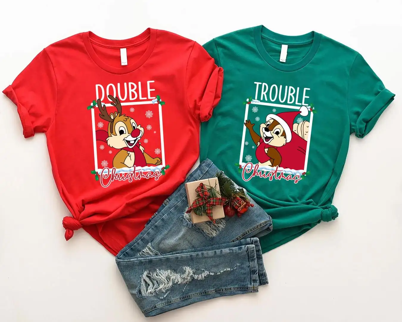 Double Trouble Chip and Dale Christmas Shirt, Disneyland Chip Xmas Tee, Disney Chip and Dale Santa Hat Tee, Disney Couple Matching Xmas Tee