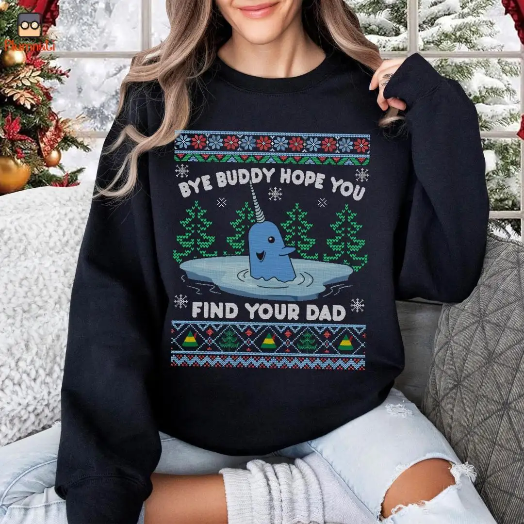 Elf Narwhal Ugly Christmas Sweater, Elf Movie Shirt, Bye Buddy Hope You Find Your Dad Shirt, Christmas Movie Shirt, Buddy The Elf Sweater