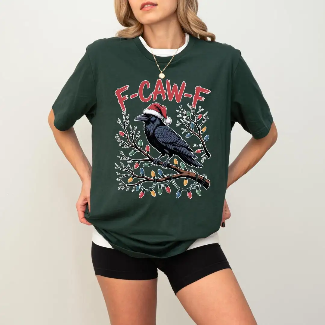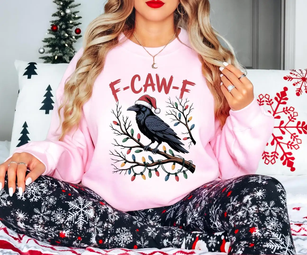 F-Caw-F Christmas Sweatshirt, Christmas Raven Shirt, Sarcastic Xmas Trip, Raven Xmas Lights Tee, Raven Lover Xmas Gift, Animal Xmas T-Shirt