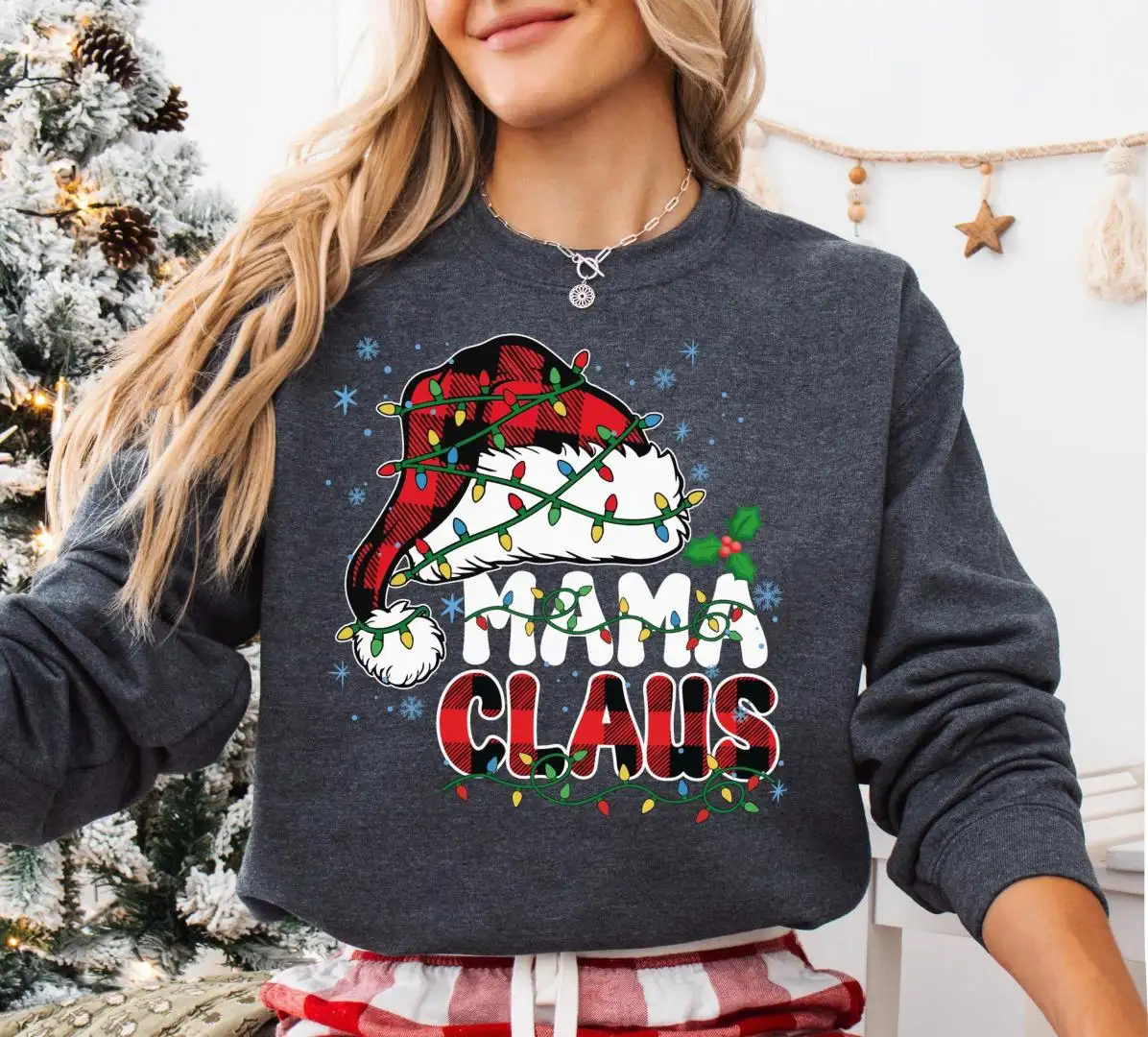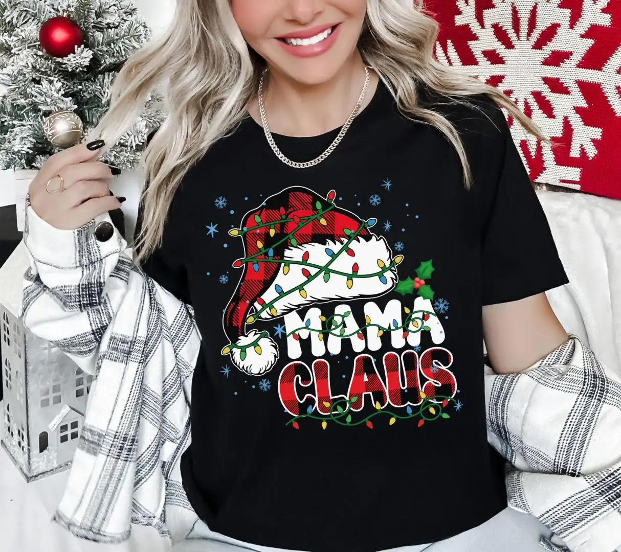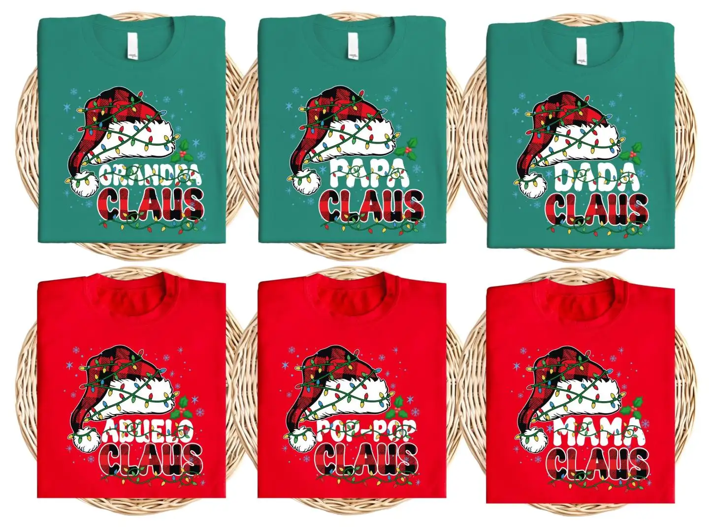 Family Claus Christmas Shirts, Family Holiday Sweater, Custom Santa Hat Matching T-Shirt, Mama Dada Claus Shirt, Christmas 2025 Party Tee