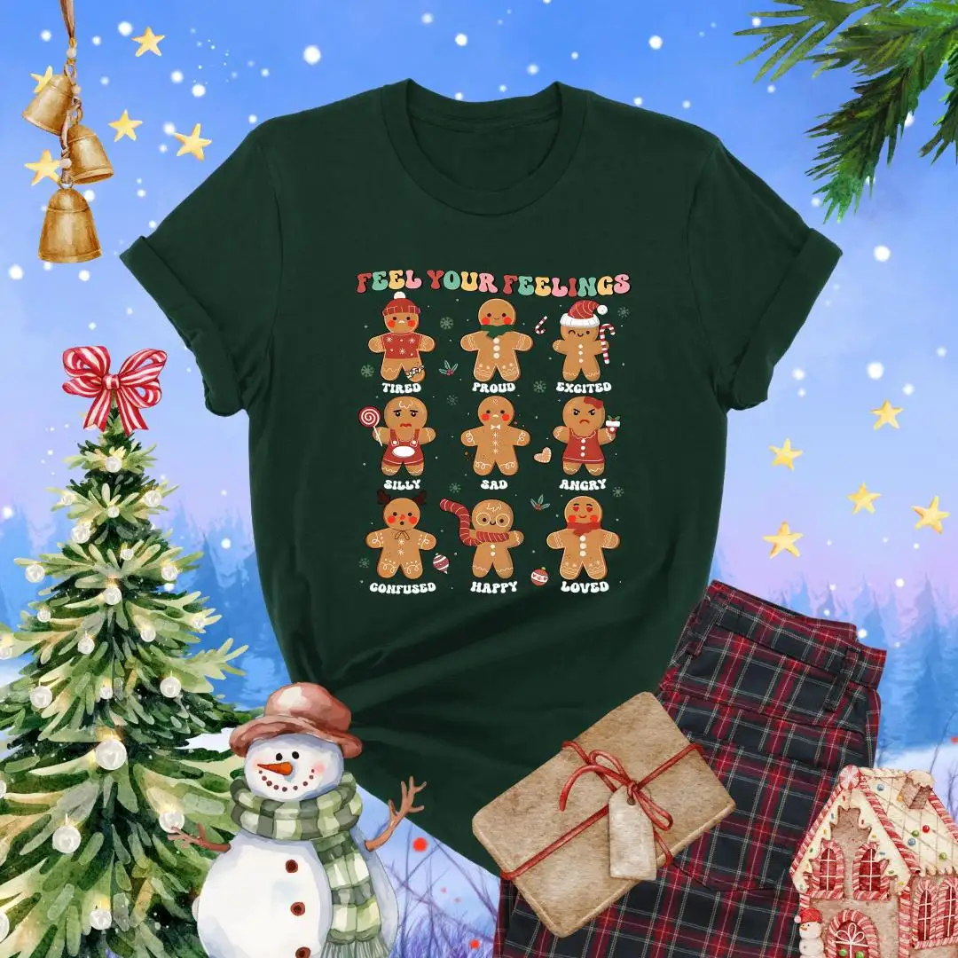 Review Feel Your Feelings Shirt, School Psychologist, Xmas Counselor, Christmas Gingerbread Shirt, OT Christmas Gift, Christmas Mental Health Shirt