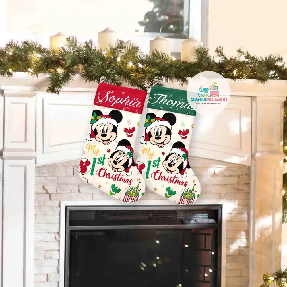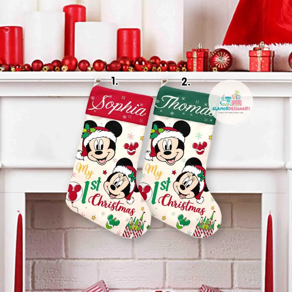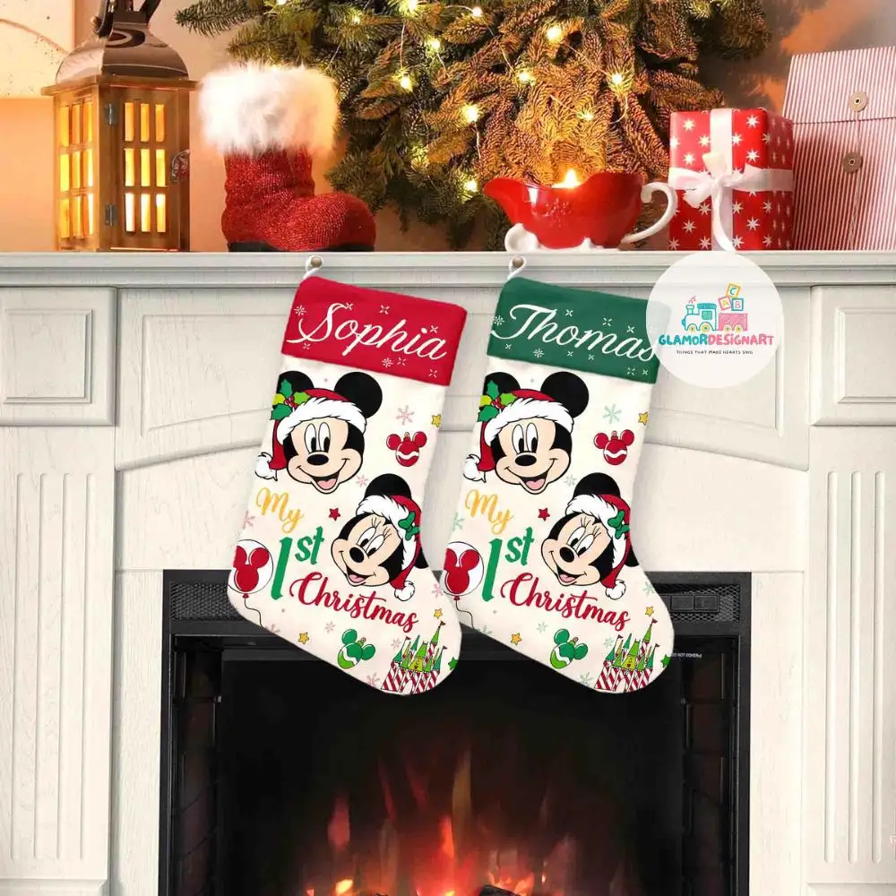First Christmas Xmas Stocking, Disney Christmas Stockings Home Decoration, Cartoon Movie Christmas Stockings, Custom Name Stockings