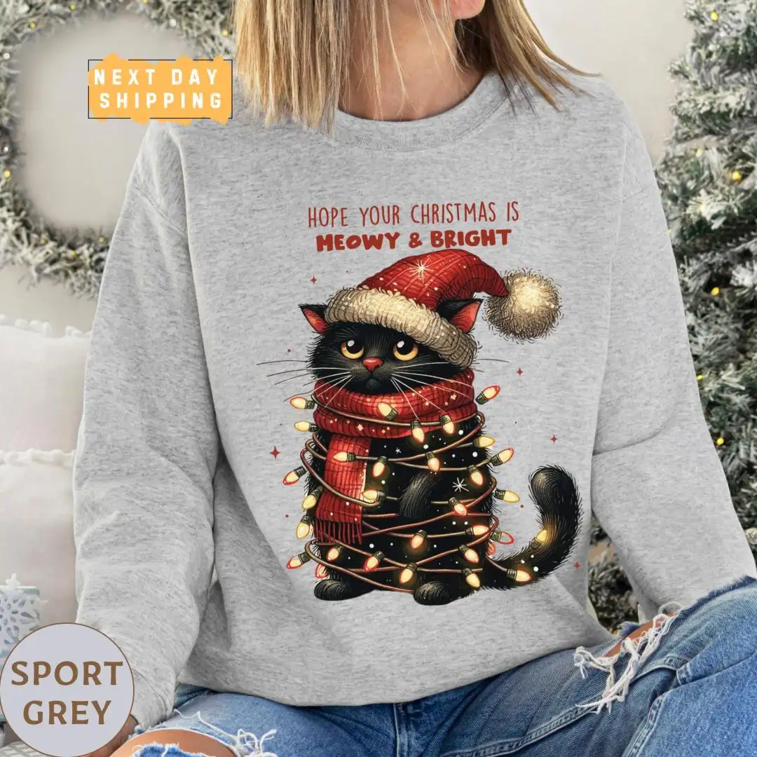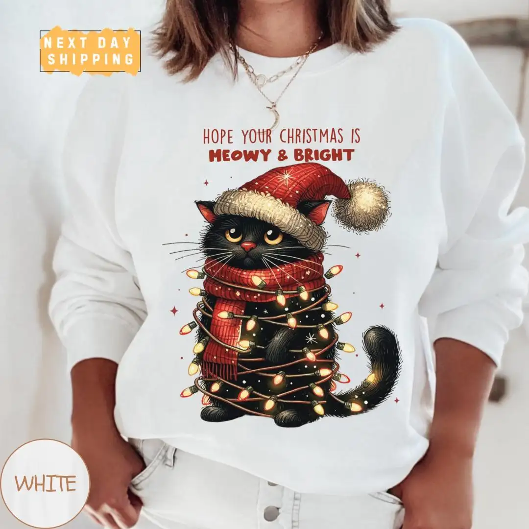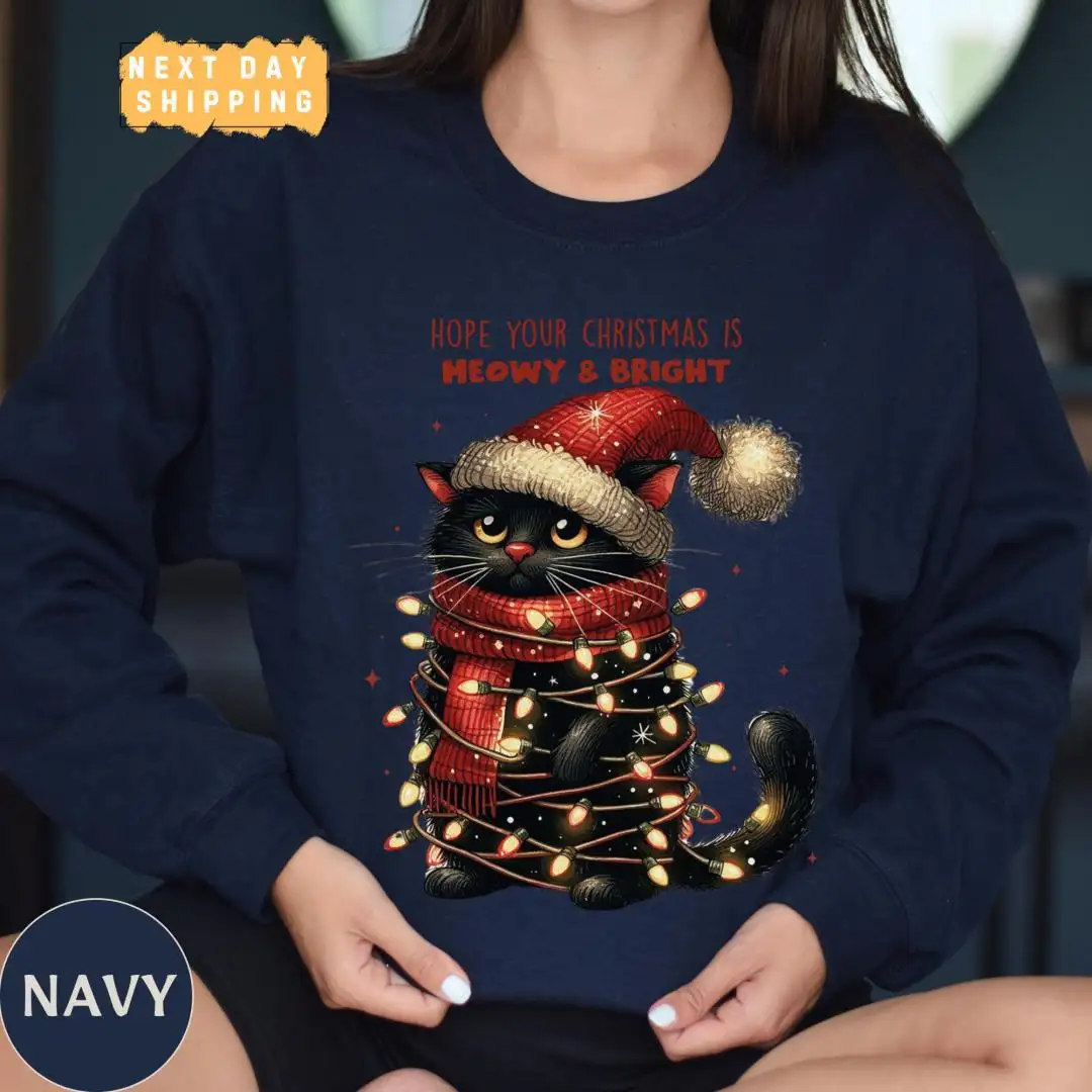 Funny Christmas Cat Mom Shirt with Lights