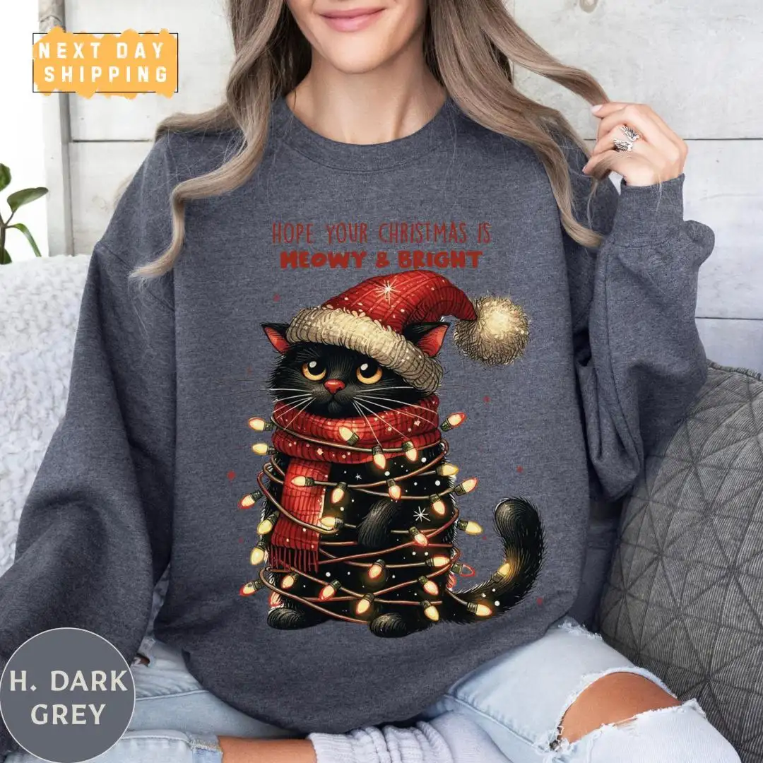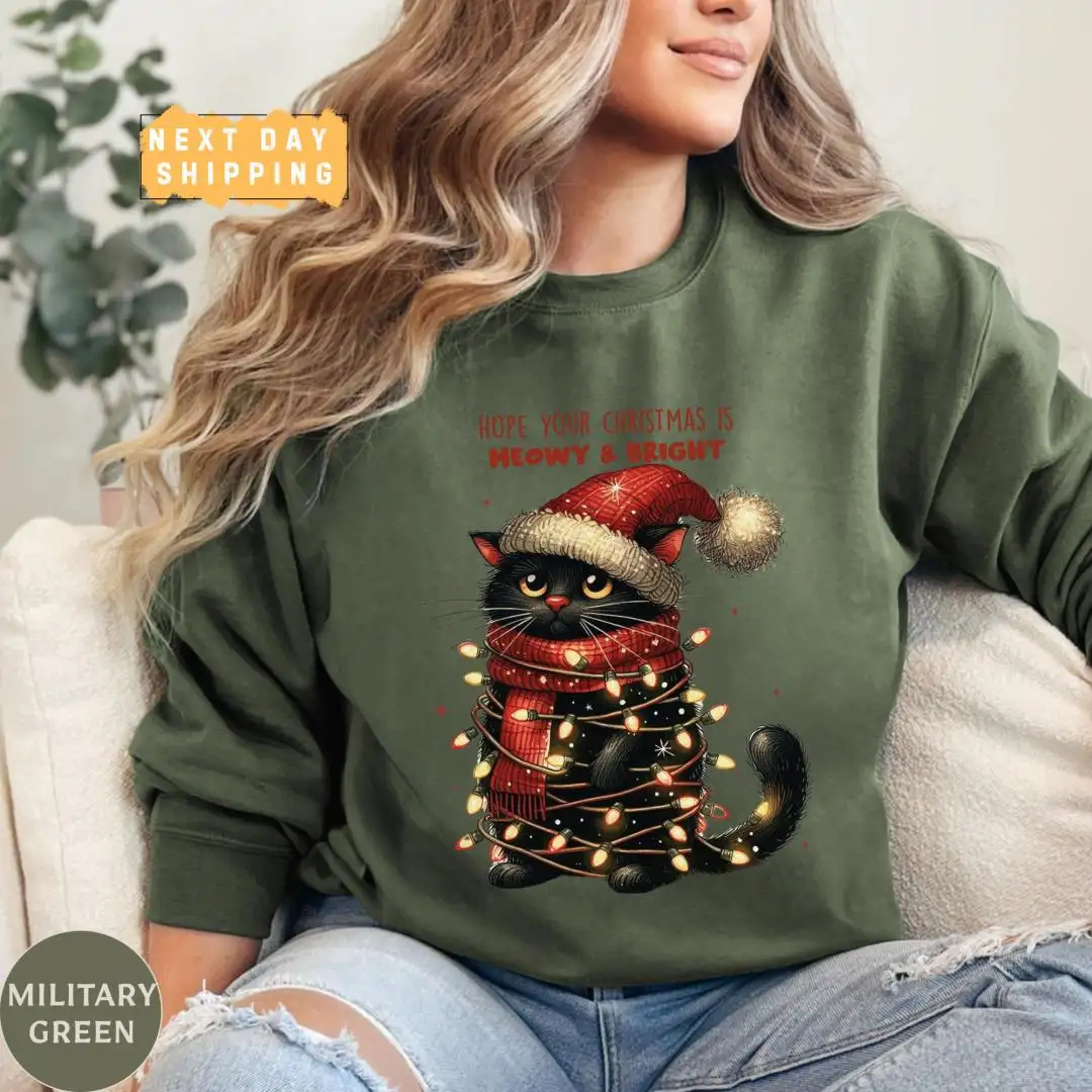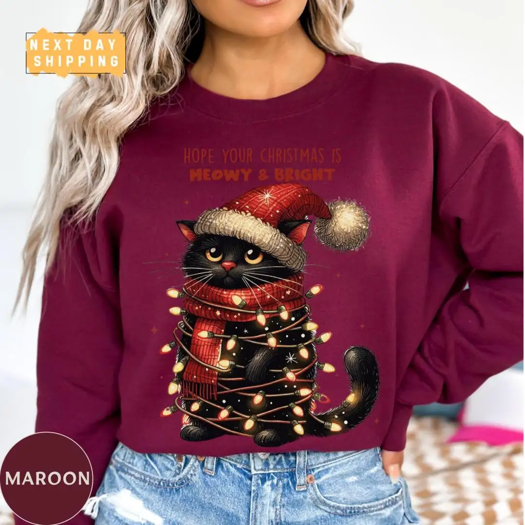 Funny Christmas Cat Mom Shirt with Lights