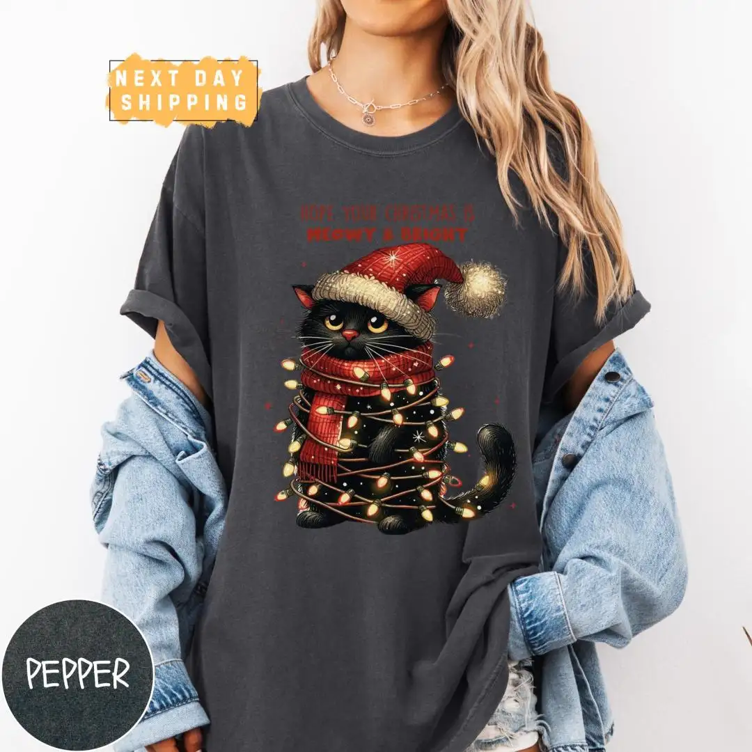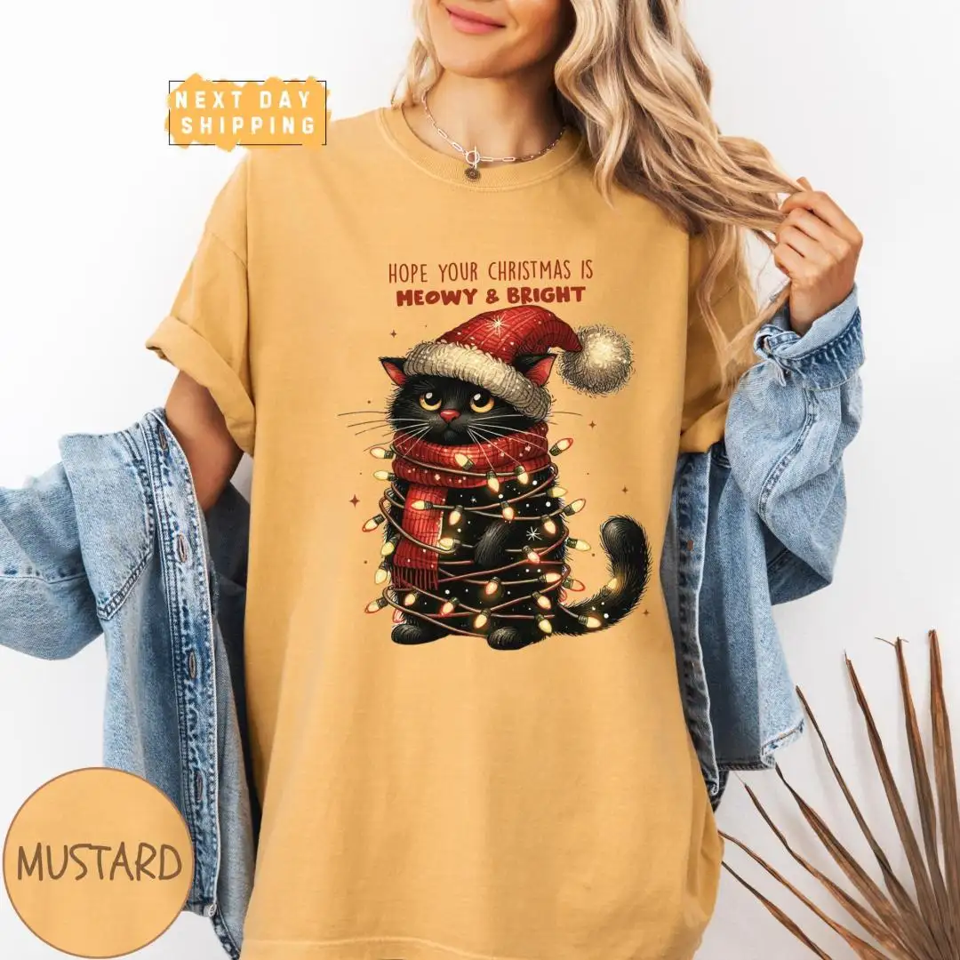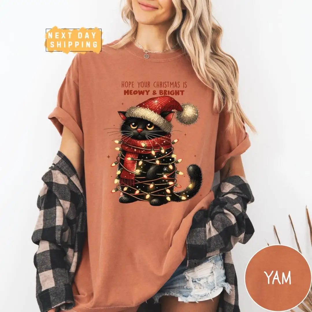 Funny Christmas Cat Mom Shirt with Meowy Holiday Phrase