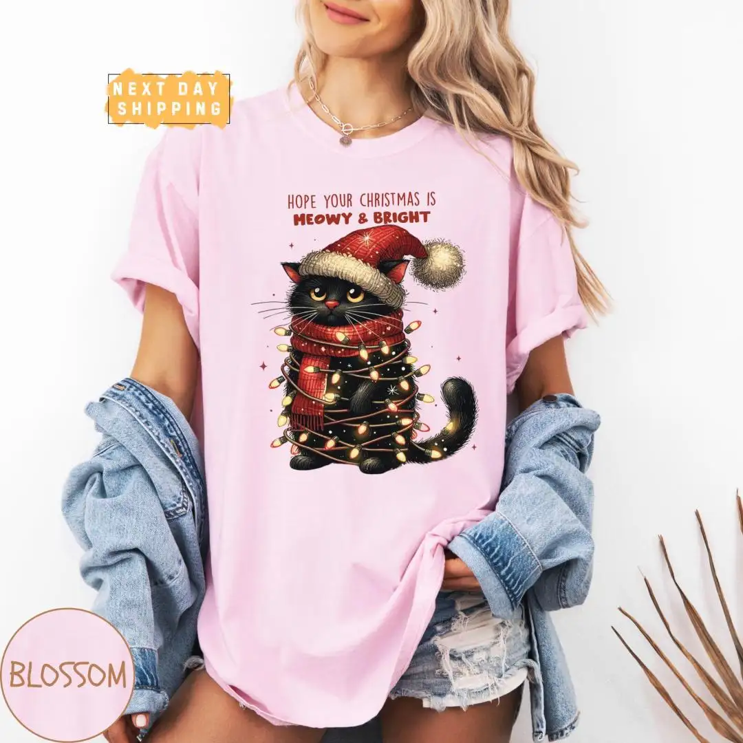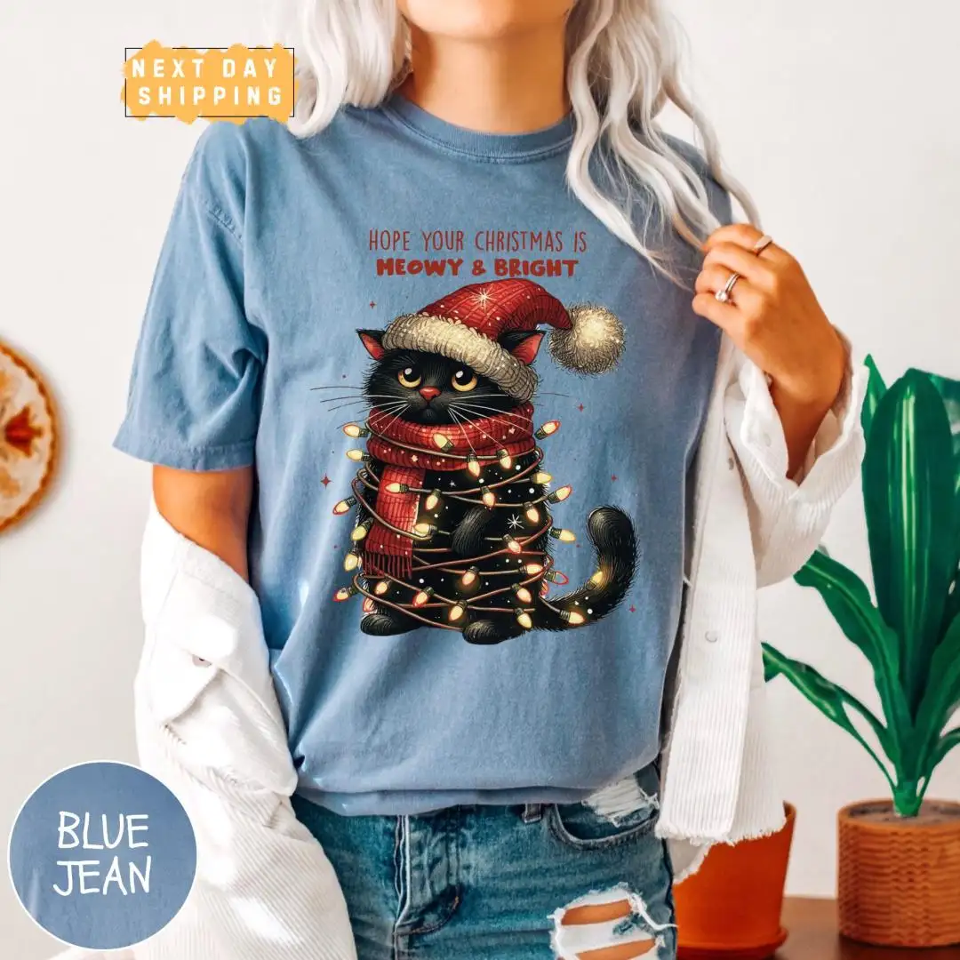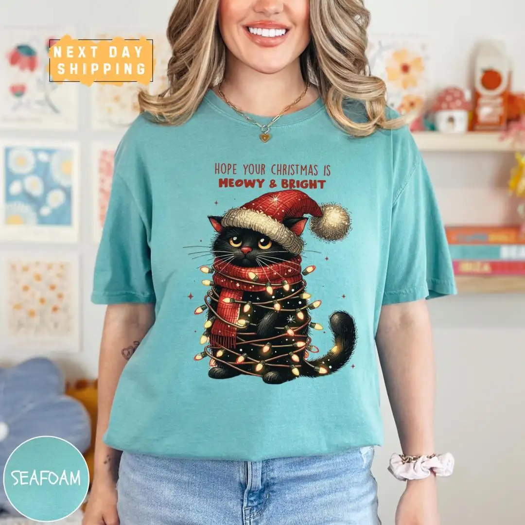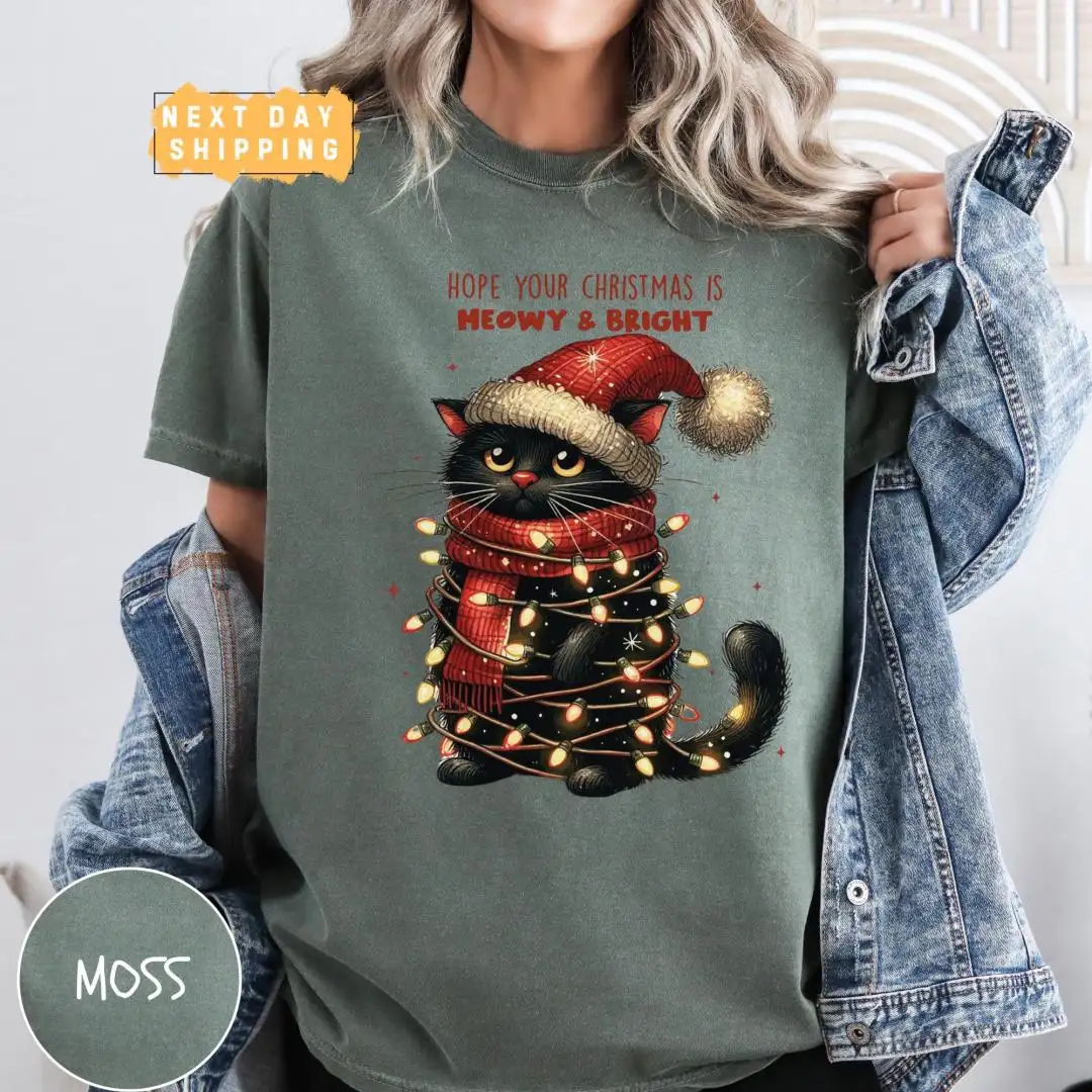 Funny Christmas Cat Mom Shirt with Meowy Holiday Phrase