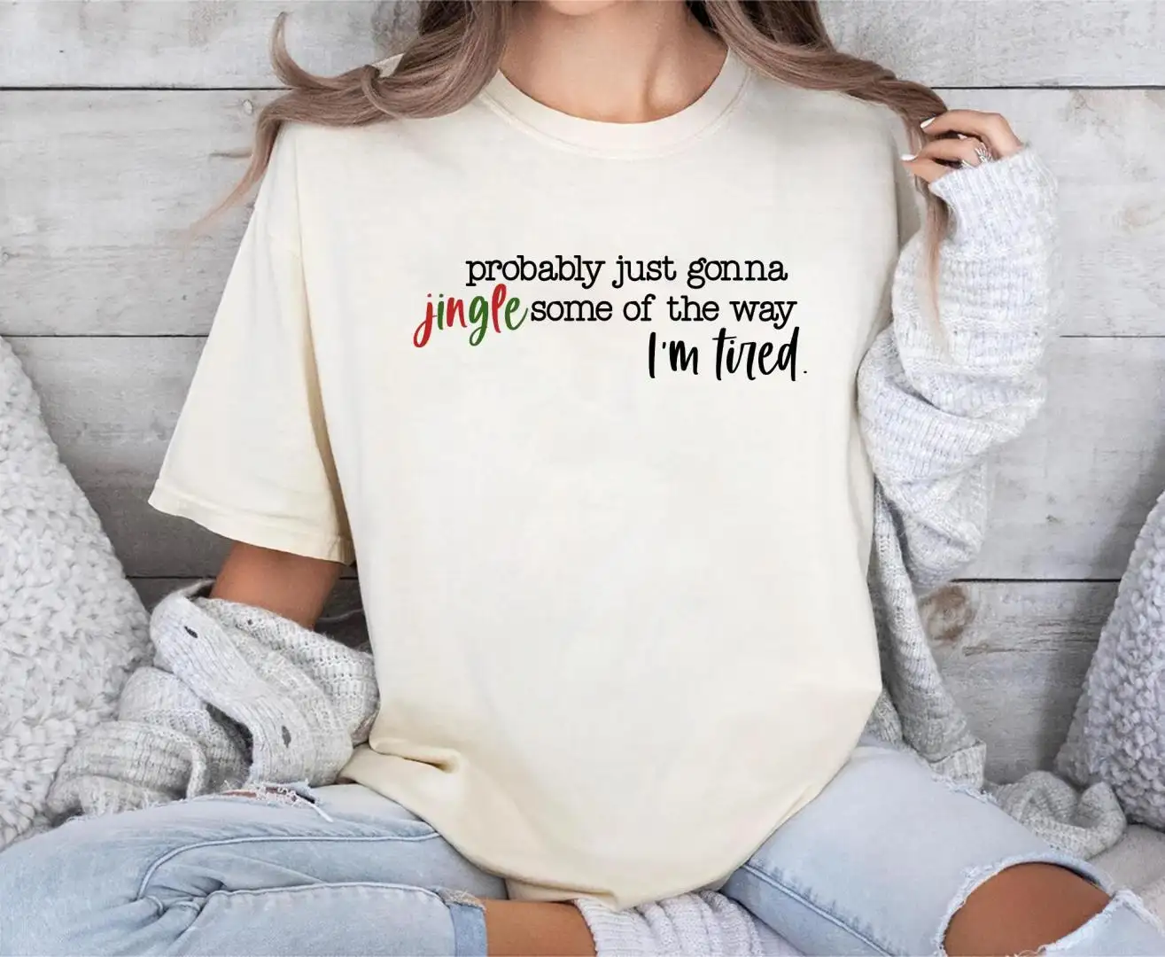 Funny Christmas Shirt Holiday Jingle Tired Comfort Colors