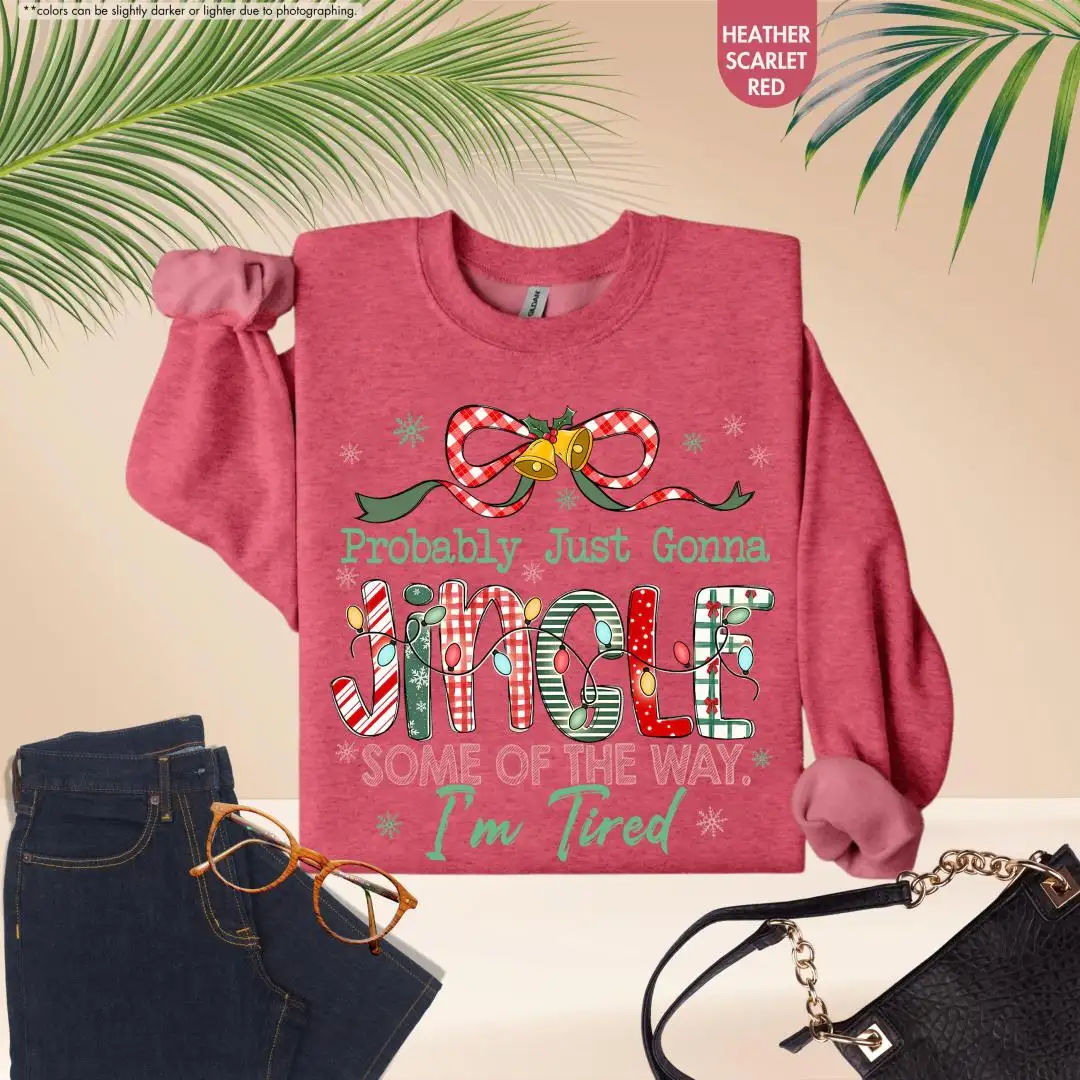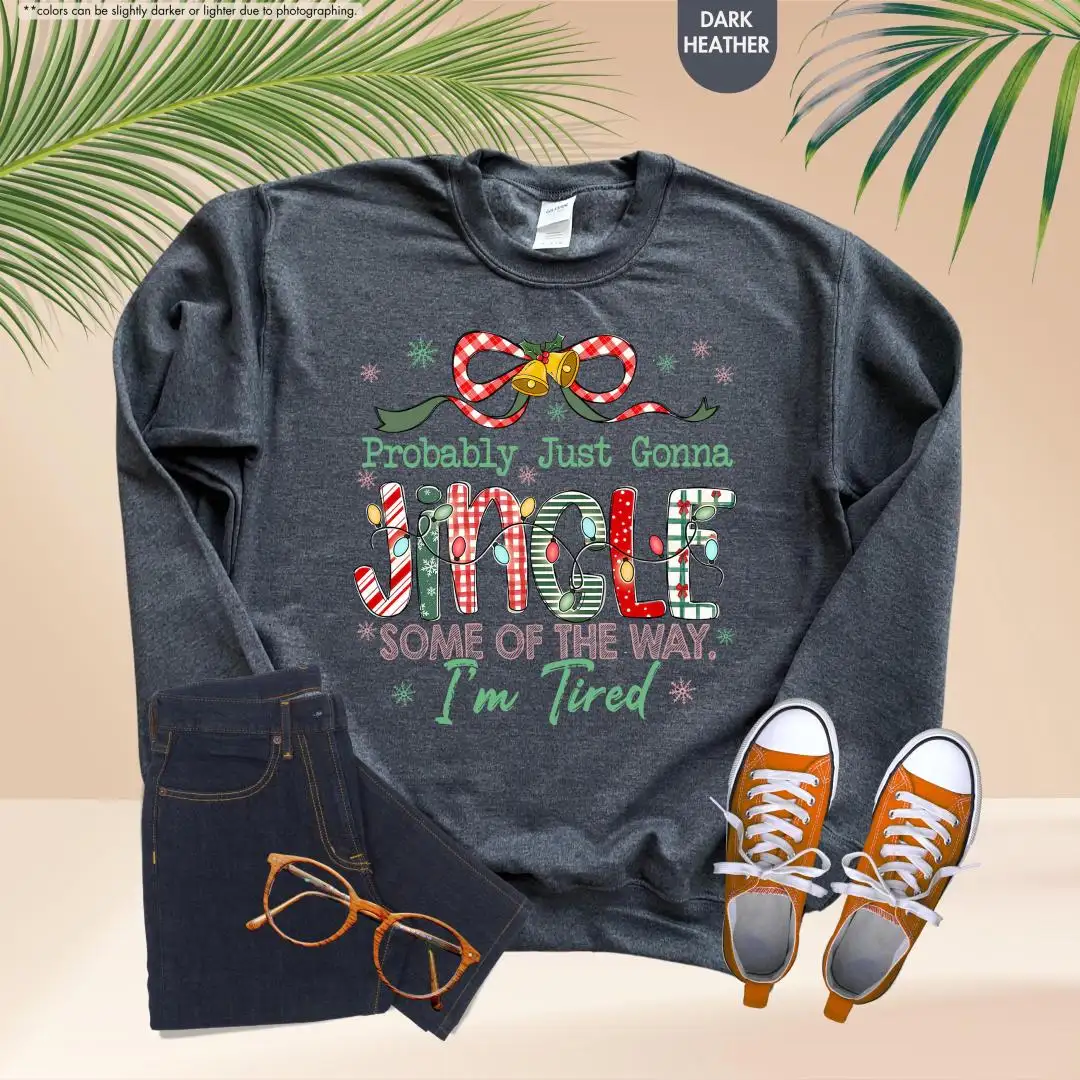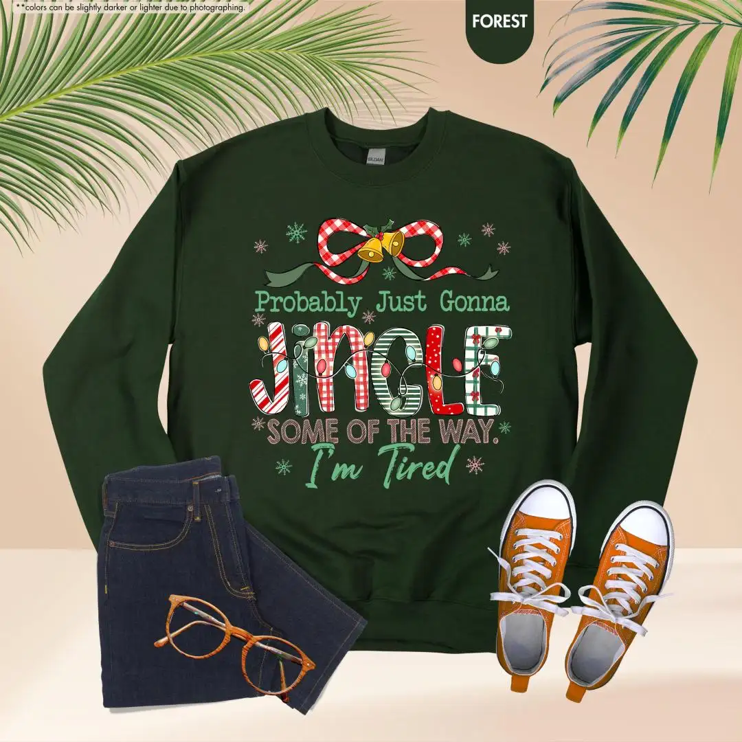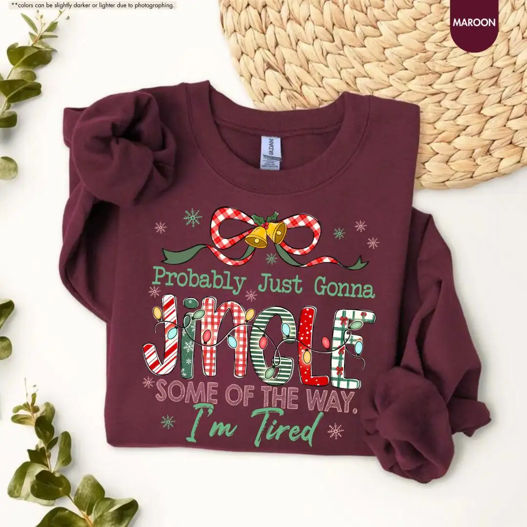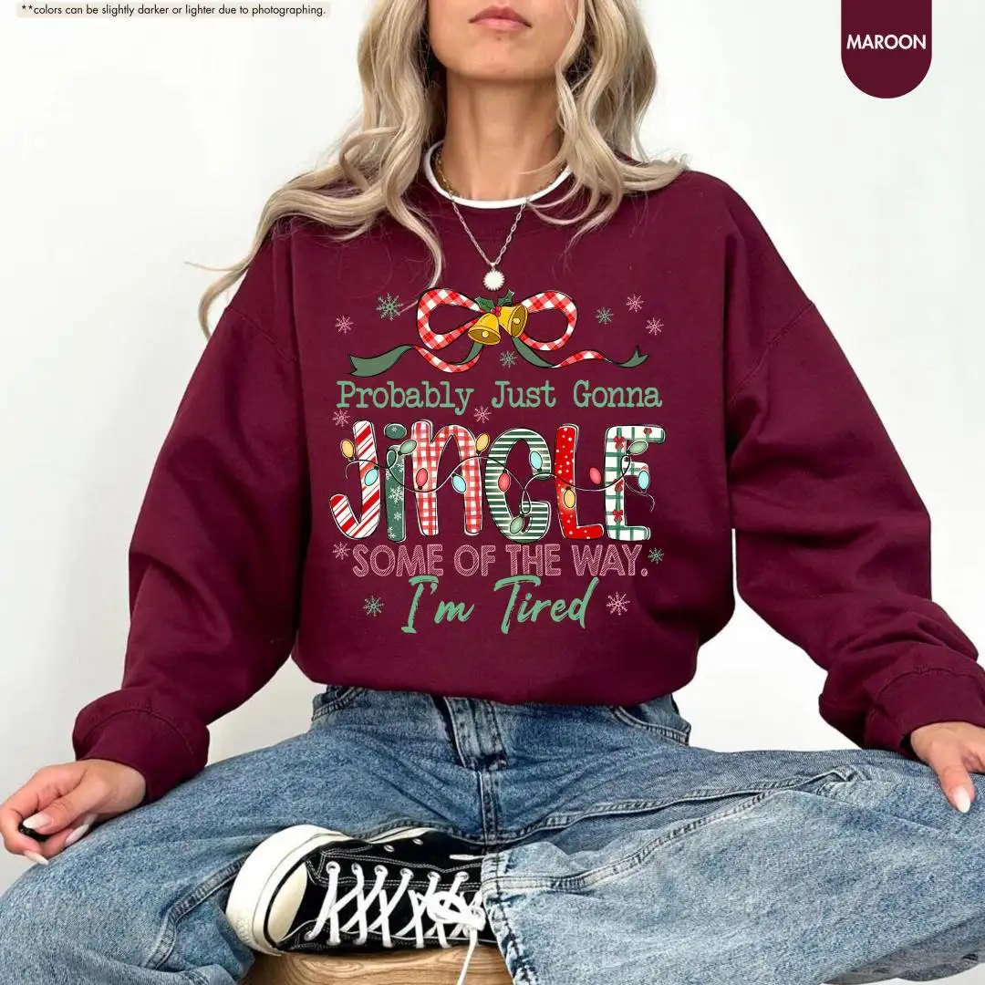 Funny Christmas Sweatshirt, Cute Holiday Tired Mom Top, Cozy Festive Pullover, Probably Just Gonna Jingle Hoodie, Christmas Gift Idea
