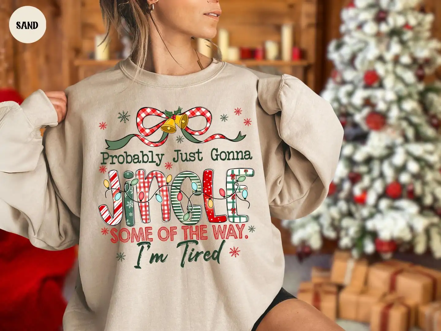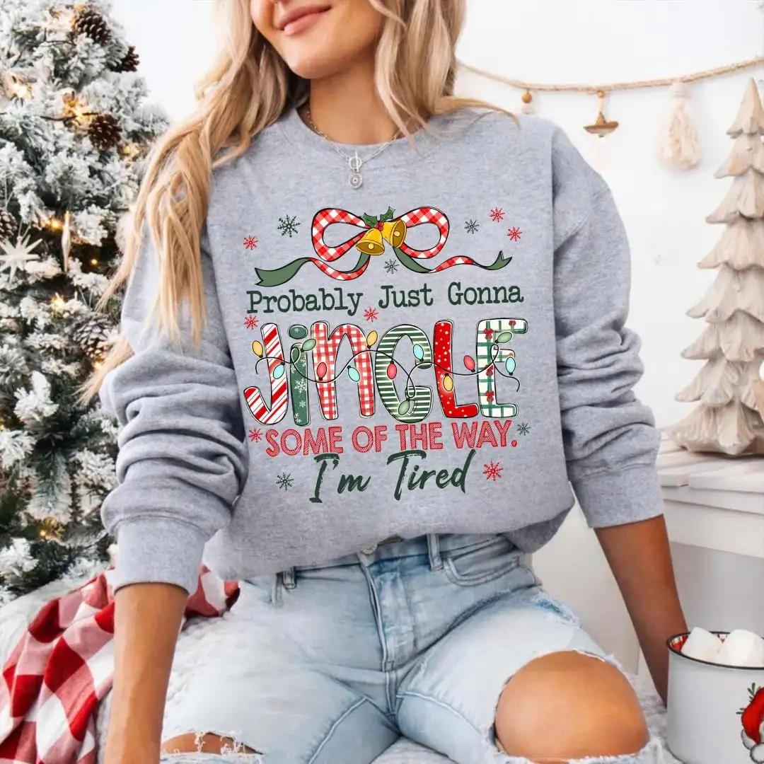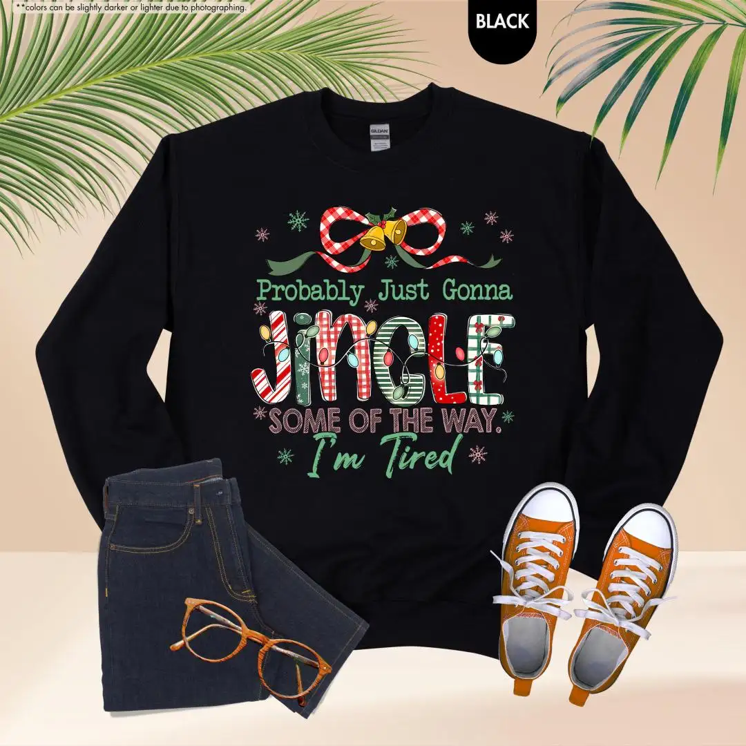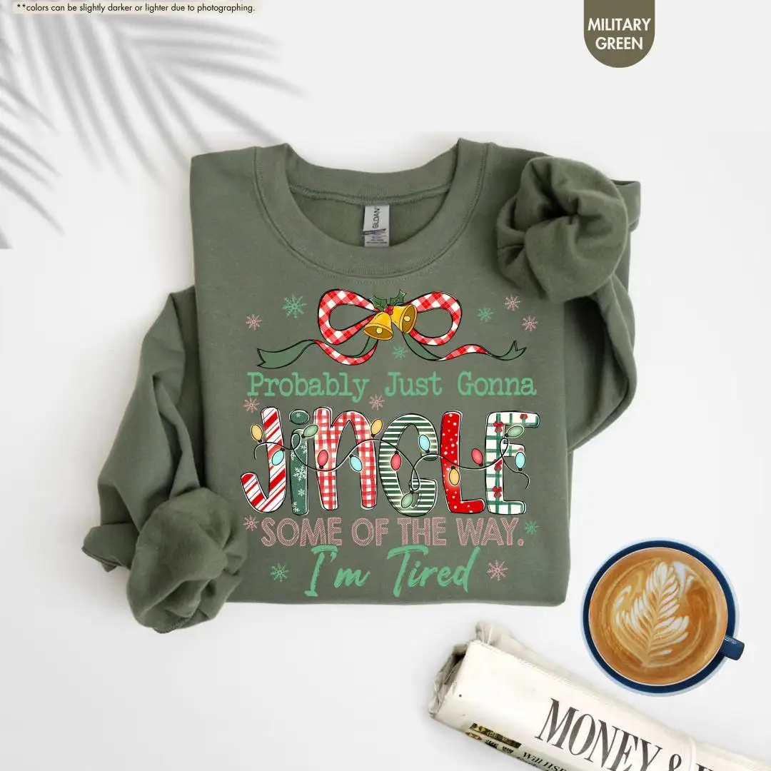 Funny Christmas Sweatshirt, Cute Holiday Tired Mom Top, Cozy Festive Pullover, Probably Just Gonna Jingle Hoodie, Christmas Gift Idea