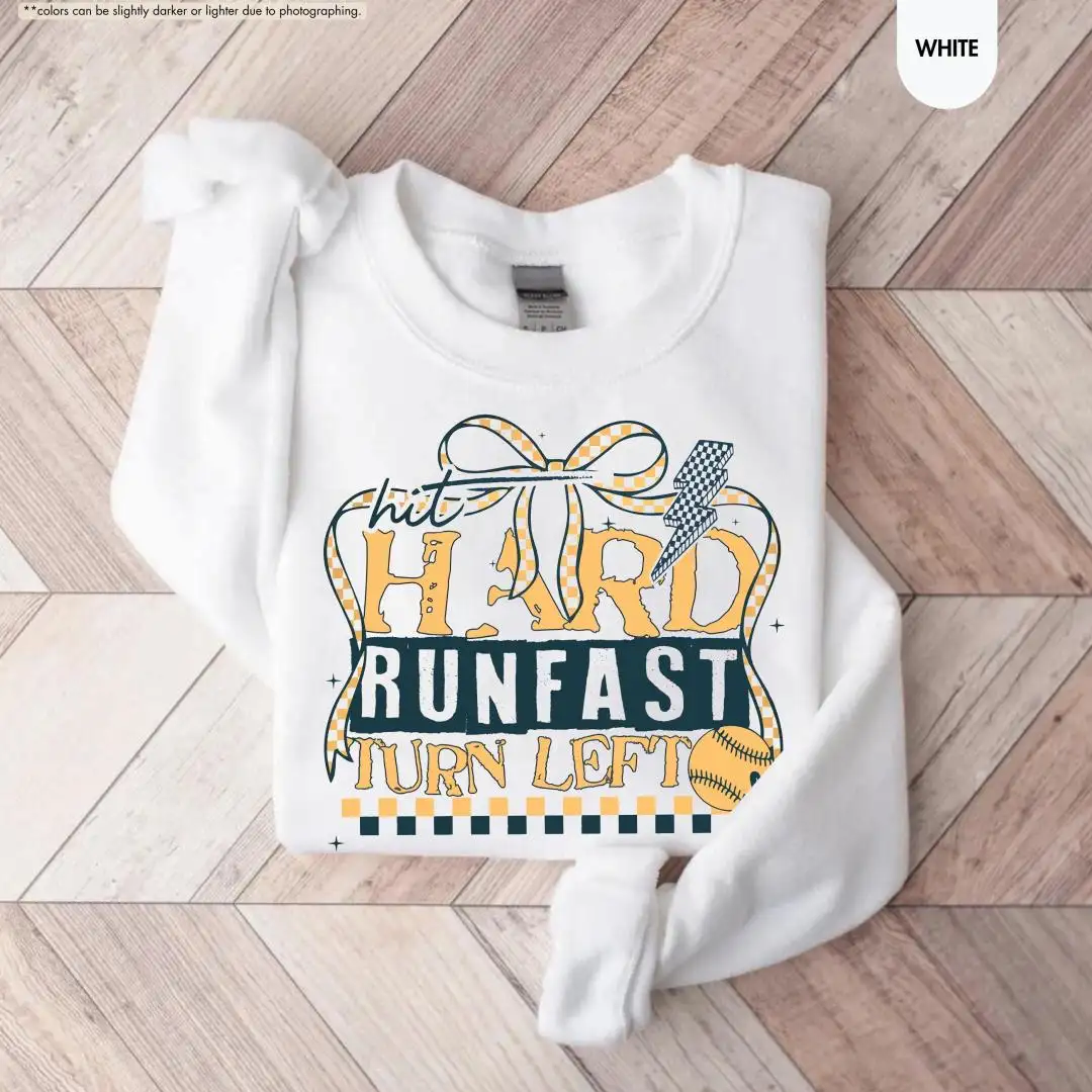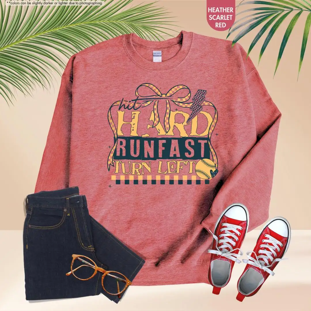 Review Funny Softball Sweatshirt, Hit Hard Run Fast Turn Left Hoodie, Baseball Dad Hoodie For Men, Softball Season Sweatshirt, Softball Player Gift