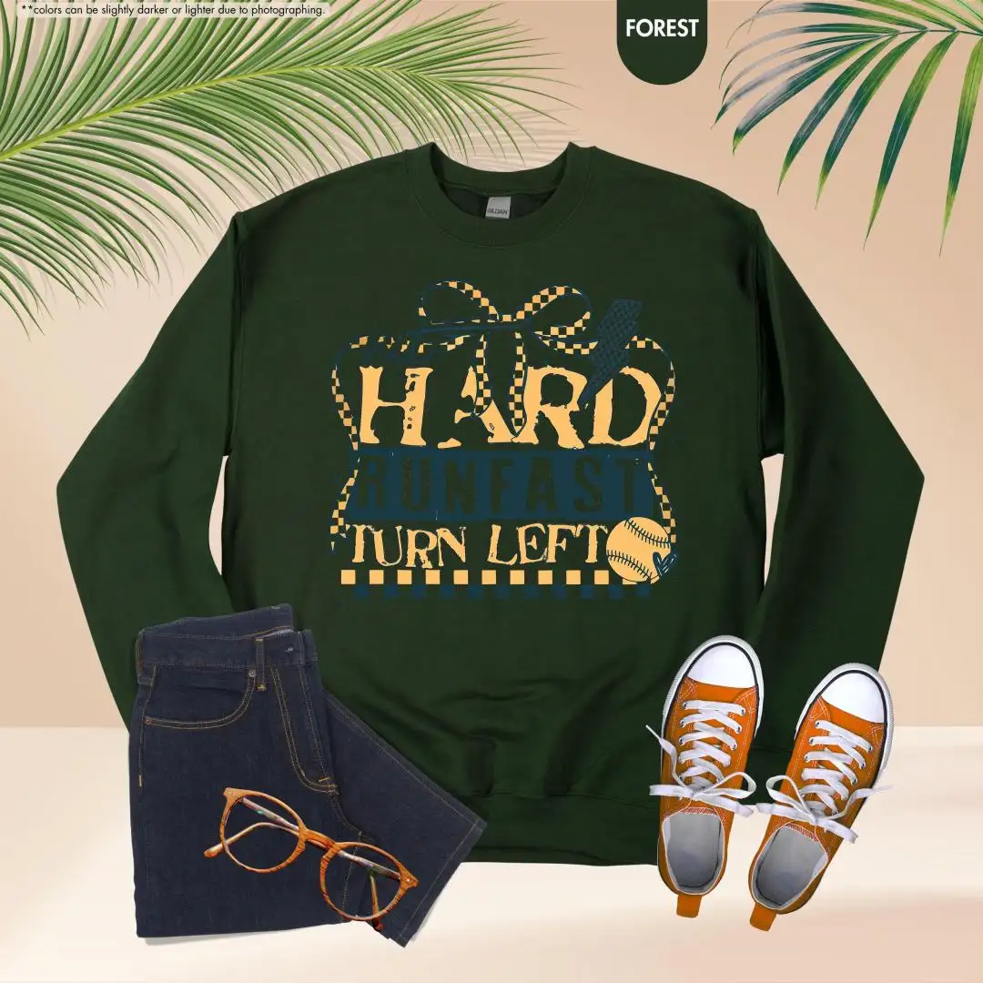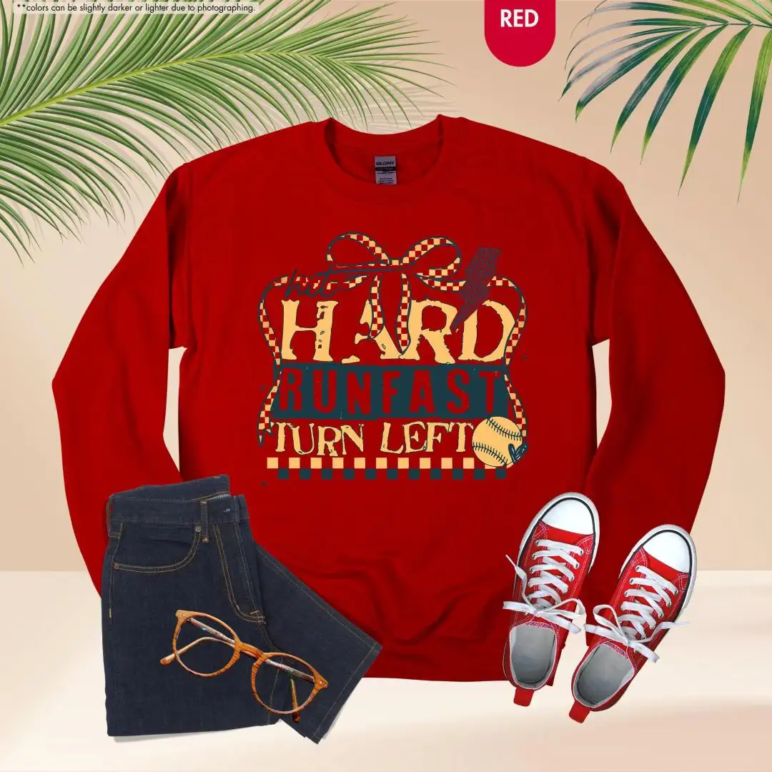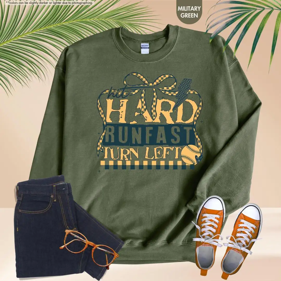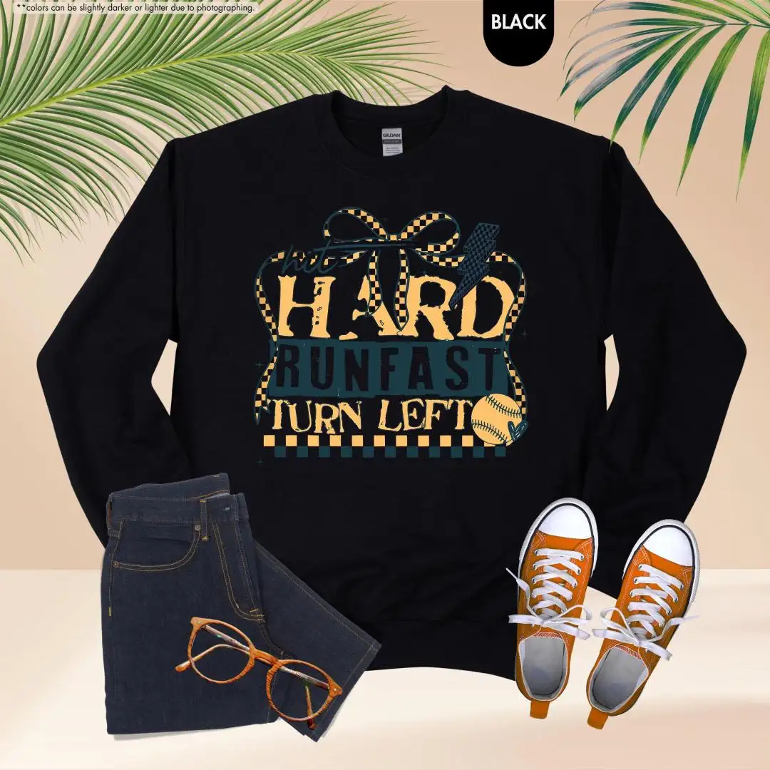 Funny Softball Sweatshirt, Hit Hard Run Fast Turn Left Hoodie, Baseball Dad Hoodie For Men, Softball Season Sweatshirt, Softball Player Gift