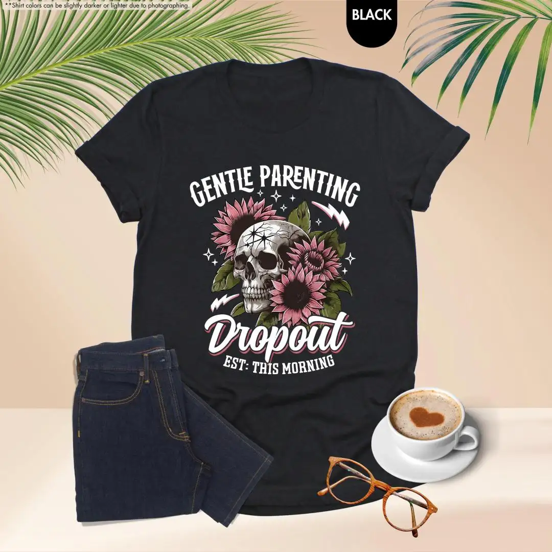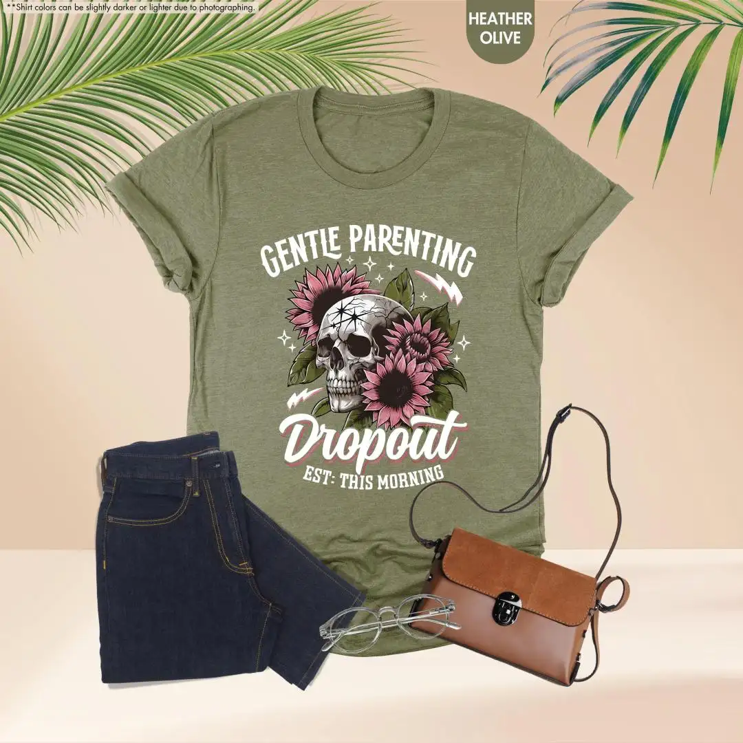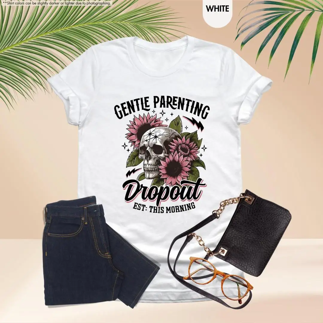 Gentle Parenting Dropout Shirt, Mother Gift, Humor Mom Saying Shirt, Funny Motherhood, Sarcastic Mom Shirt, Mom Life Shirt, Floral Skull Mama