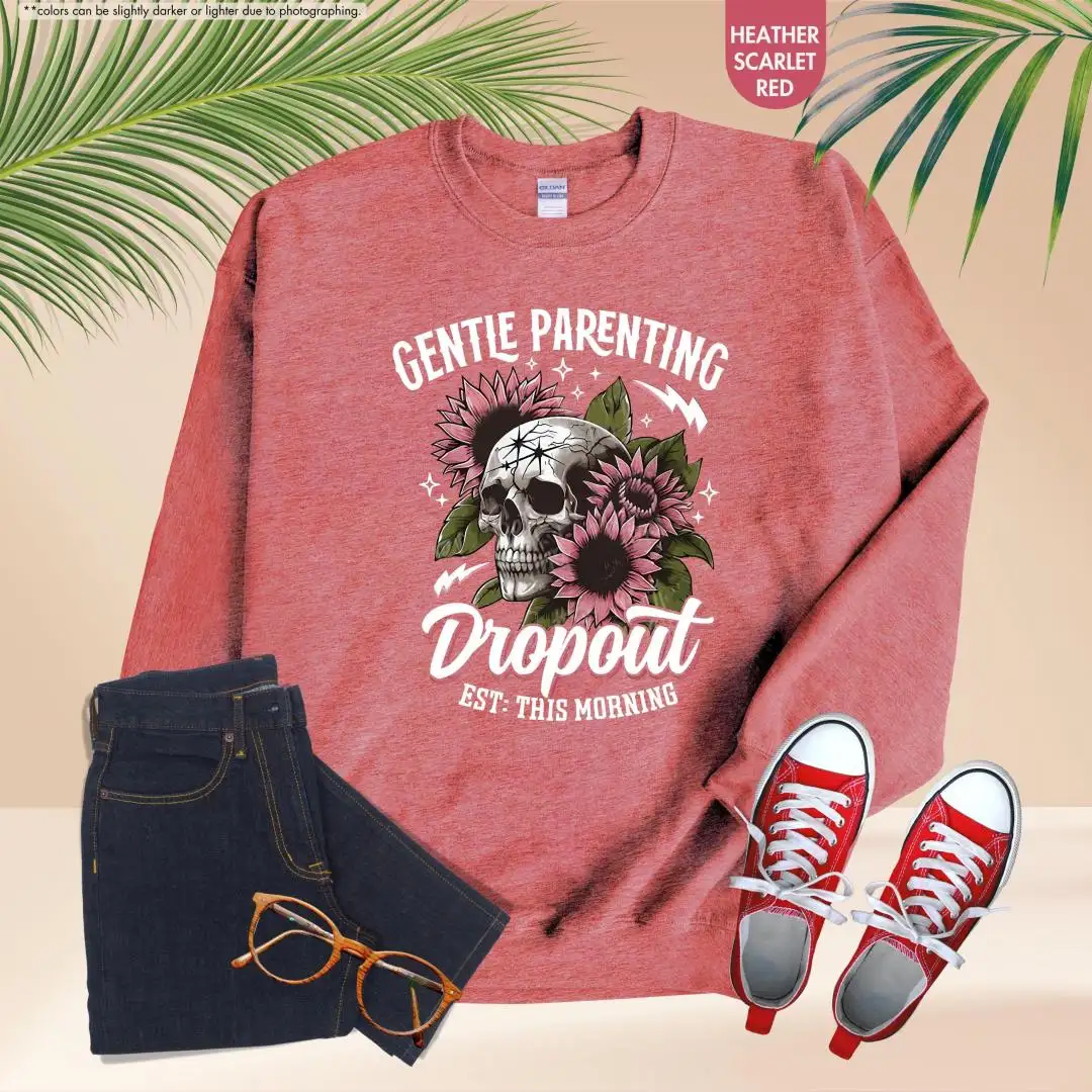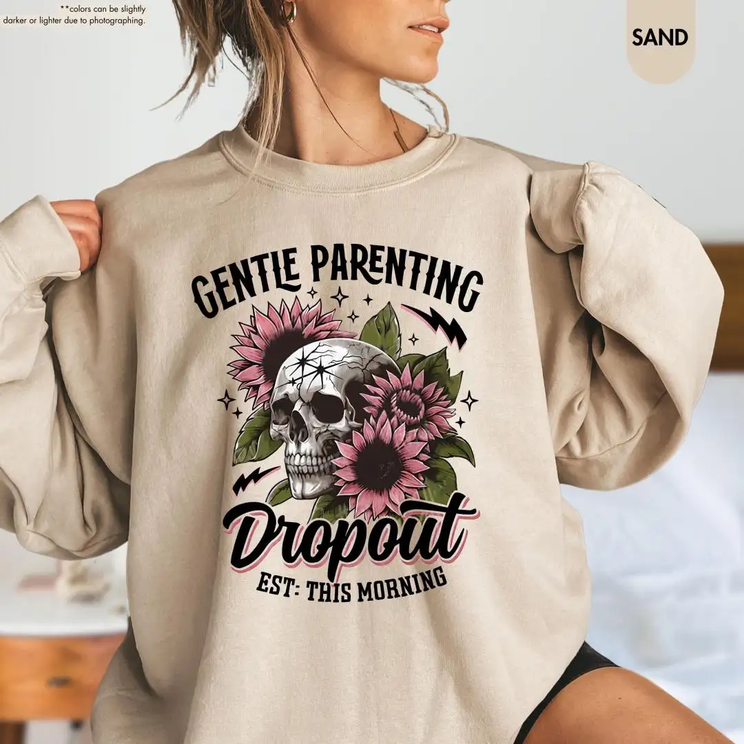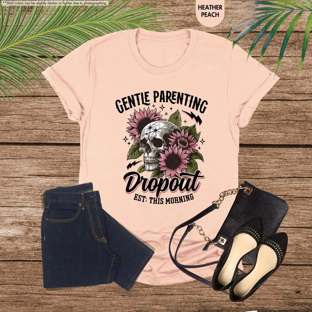 Gentle Parenting Dropout Shirt, Mother Gift, Humor Mom Saying Shirt, Funny Motherhood, Sarcastic Mom Shirt, Mom Life Shirt, Floral Skull Mama