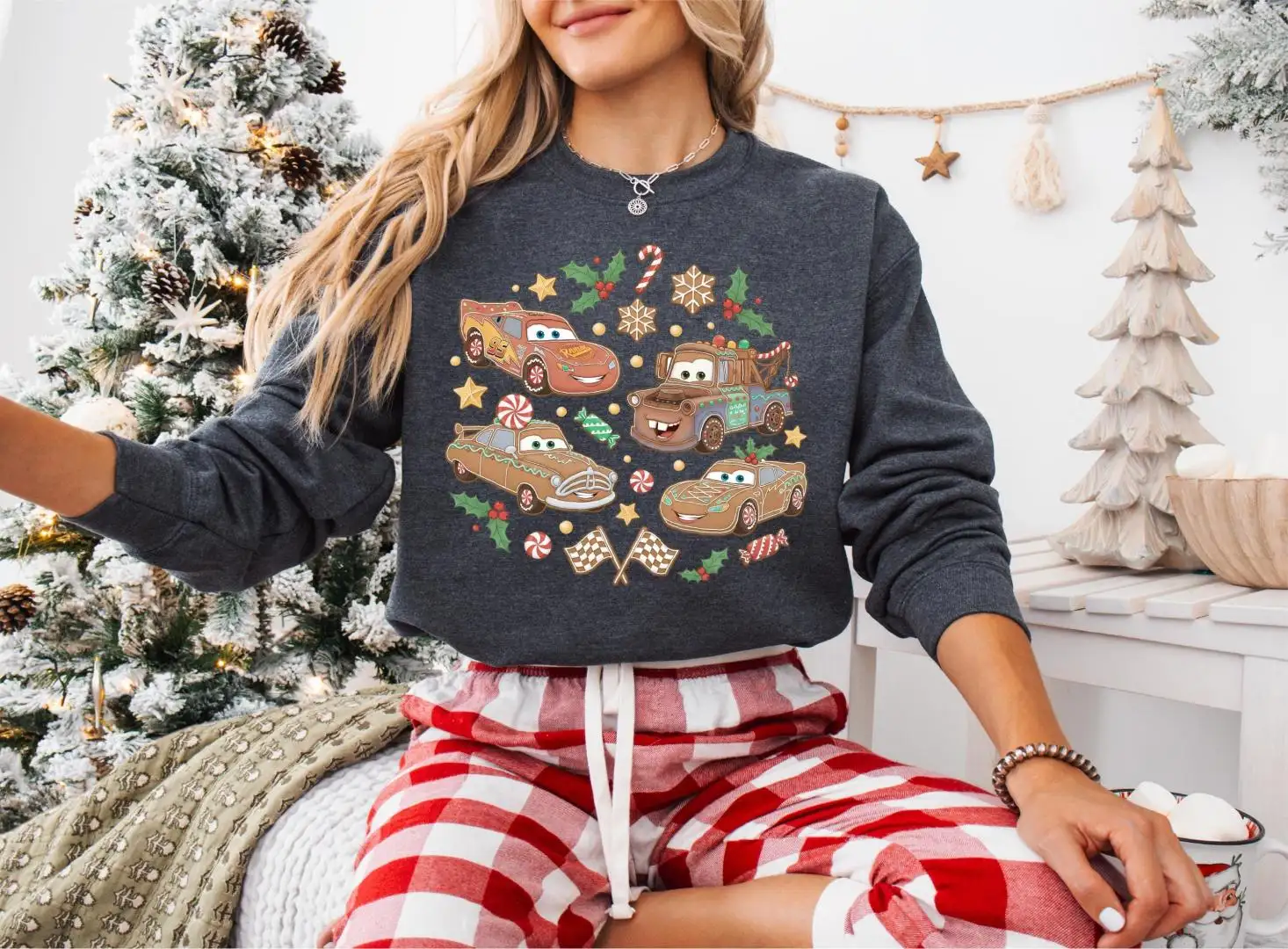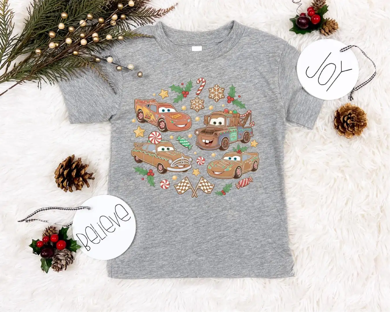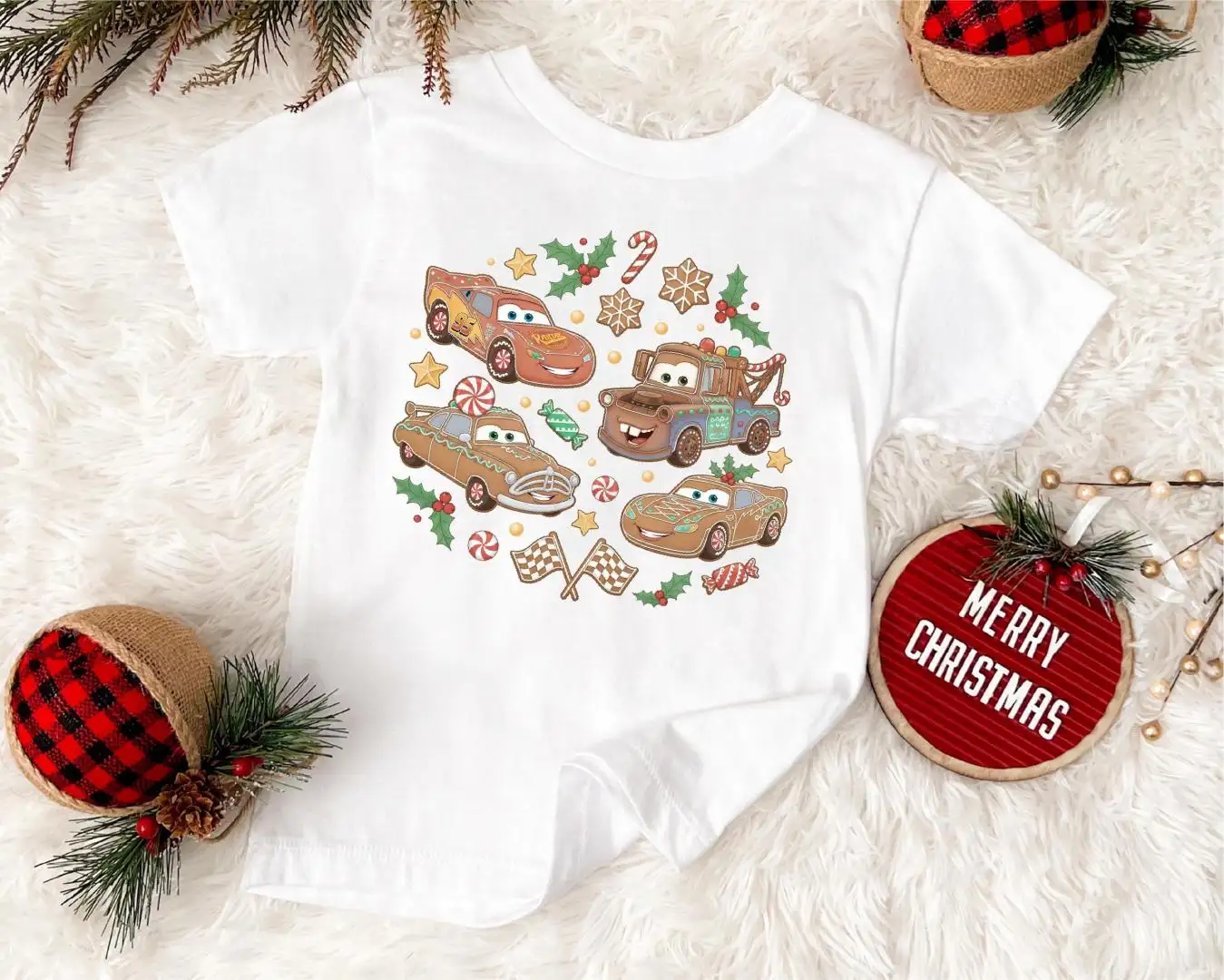 Gingerbread Disney Cars Shirt, Kids Disney Christmas Shirt, McQueen Sally Tow Mater Doc Hudson Xmas Tee, Cars Christmas Sweatshirt