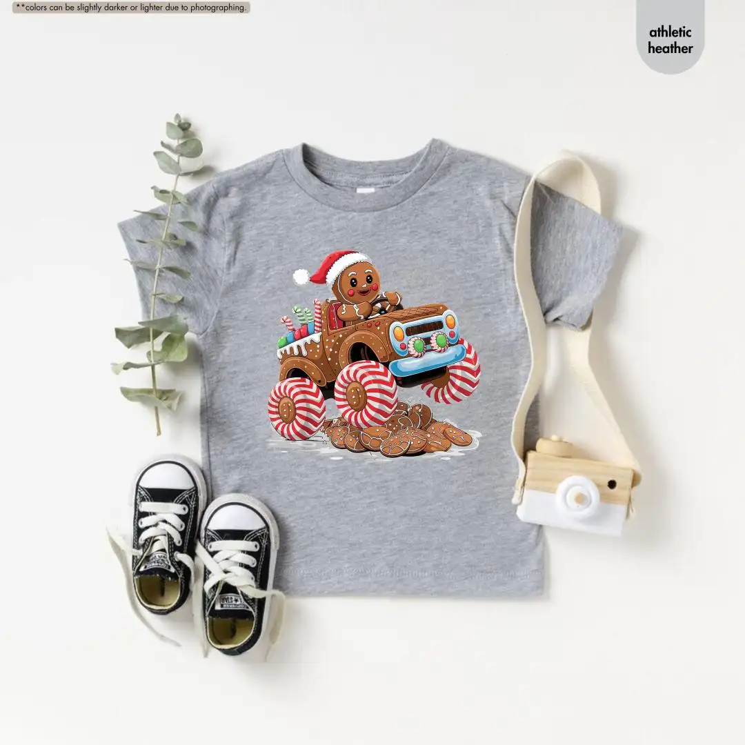 Gingerbread Monster Truck Christmas Kids Shirt, Gingerbread Boy Shirt, Santa Cookie Shirt, Toddler Boy Xmas Tee, Youth Holiday T-Shirt