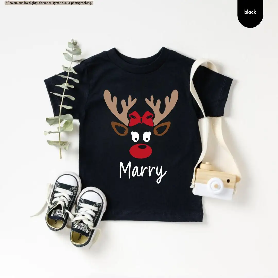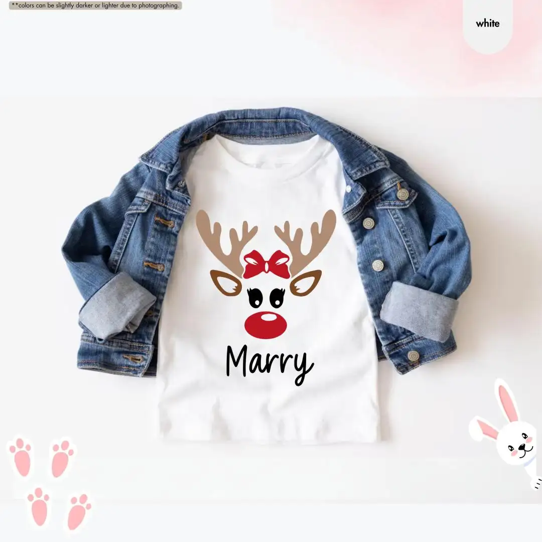Review Girls Christmas Shirt, Reindeer Face Shirt, Custom Baby Christmas Shirt, Personalized Reindeer Name Shirt For Kids, Toddler Christmas Tee