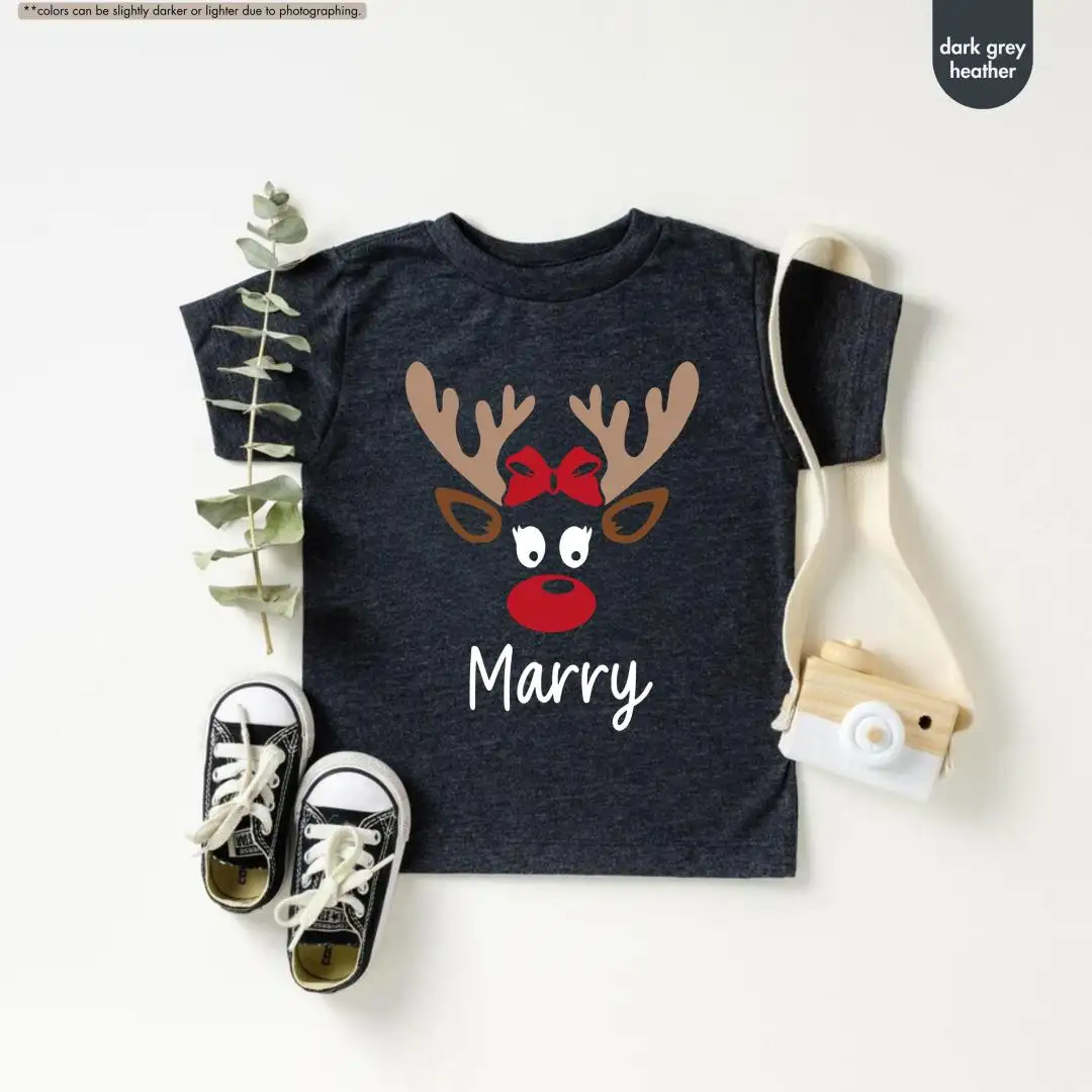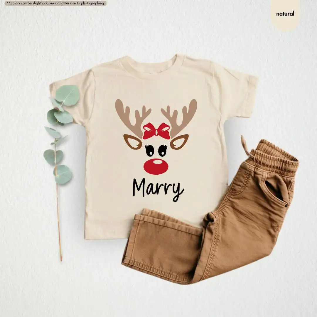 Girls Christmas Shirt, Reindeer Face Shirt, Custom Baby Christmas Shirt, Personalized Reindeer Name Shirt For Kids, Toddler Christmas Tee