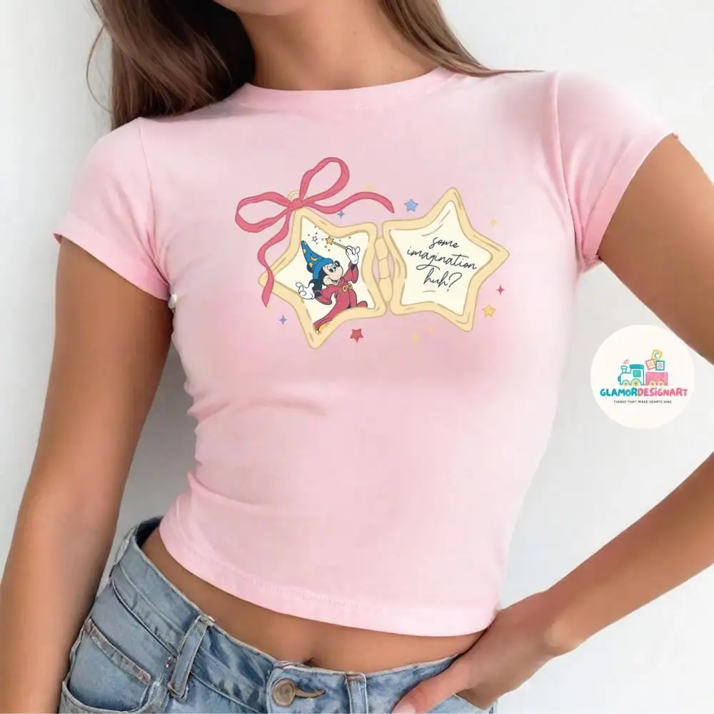 Girly Disney Fantasia Crop Tank, Fantasia Sorcerer Mickey Wizard Baby Tee Crop Top, Fantasmic Some Imagination Huh, Disney Girl Trip Shirt