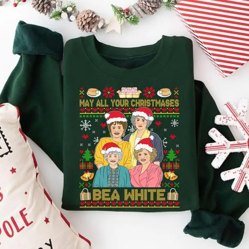 Golden Girls Christmas Sweater, Golden Girls Movie Christmas Shirt, Xmas Gift, May All Your Christmases Bea White Ugly Christmas Sweater