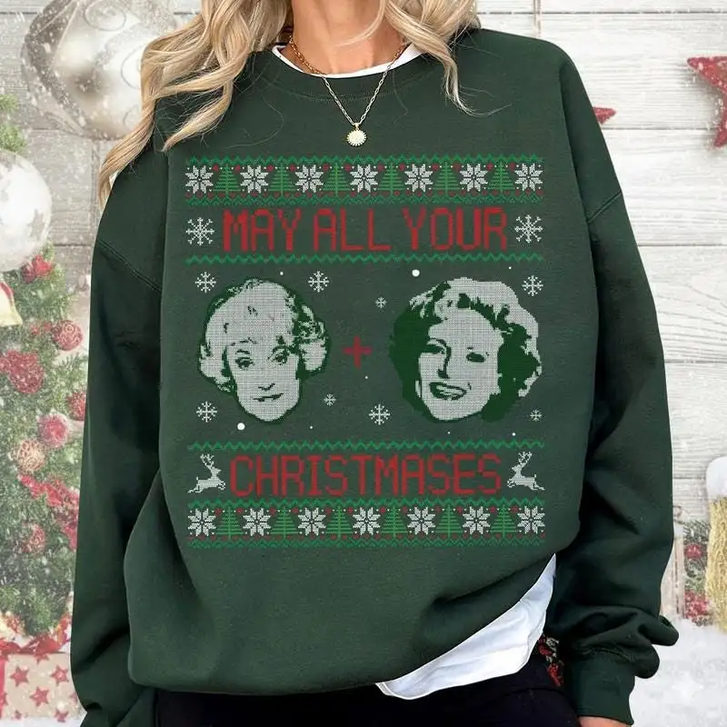 Golden Girls May All Your Christmases Ugly Sweatshirt The Golden Girls Sweater Christmas White Movie Tee Group Xmas Shirt Group Xmas Shirt