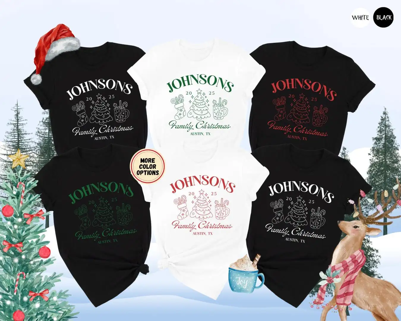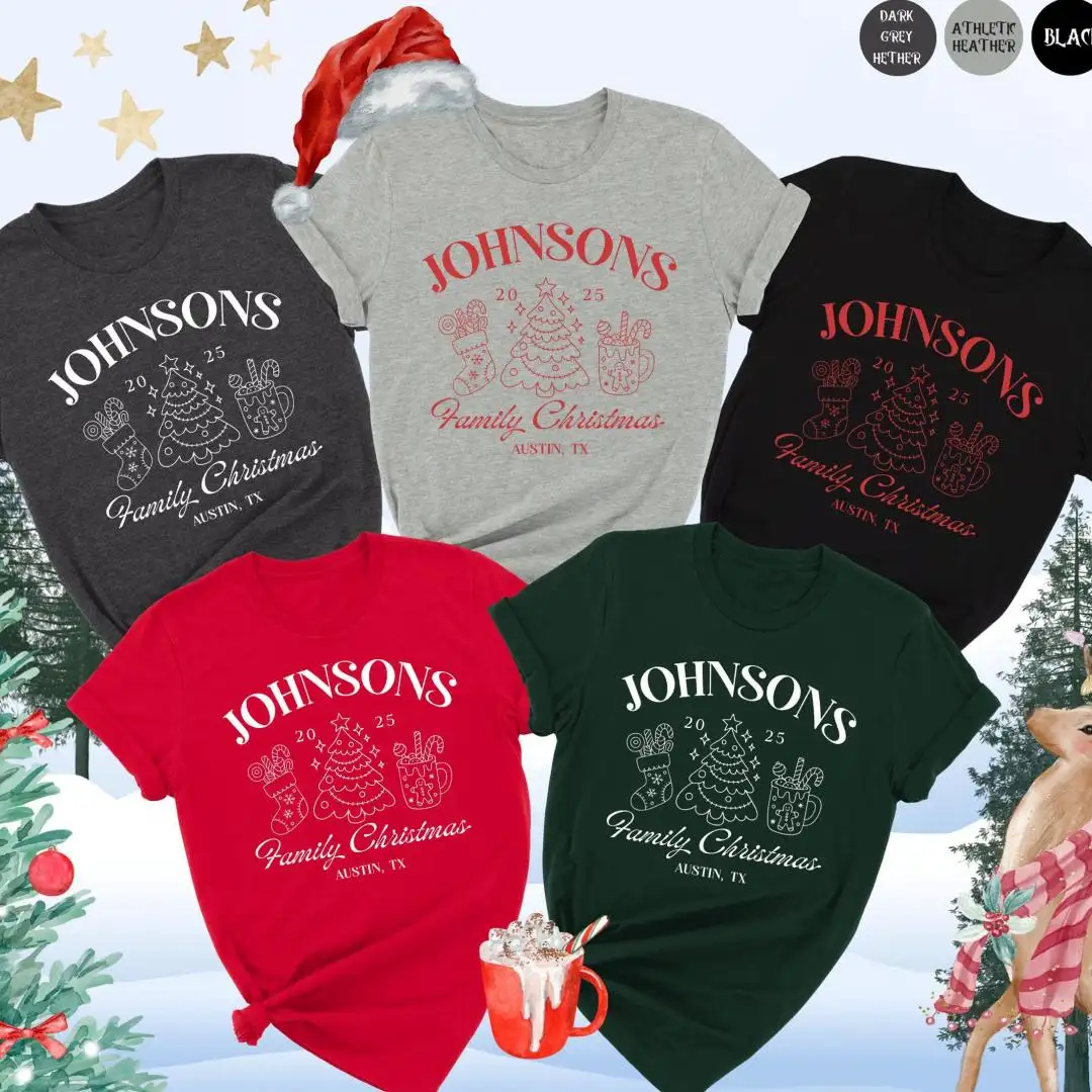 Group Christmas Shirt 2025, Christmas Crew Shirt, Custom Holiday Matching Tees, Hot Cocoa Group Outfit, Personalized Xmas Tree Mug Top