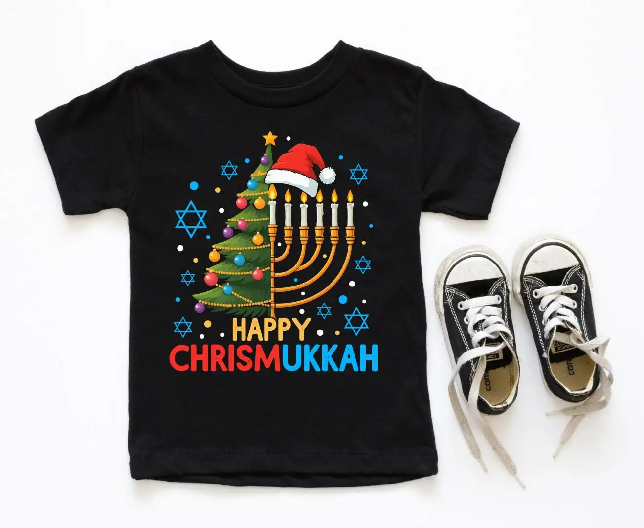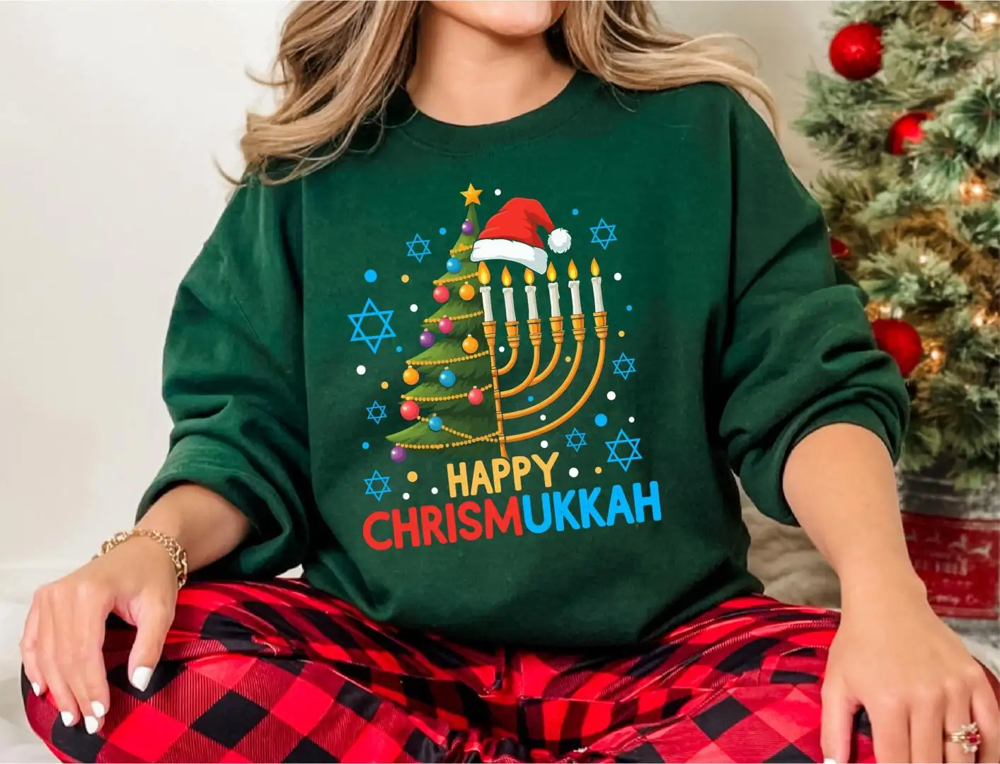 Happy Chrismukkah Shirt, Christmas Santa Hat Sweater, Festive Christmas Judaica Gift Shirt, Merry Chrismukkah Shirt, Jewish Religious Shirts