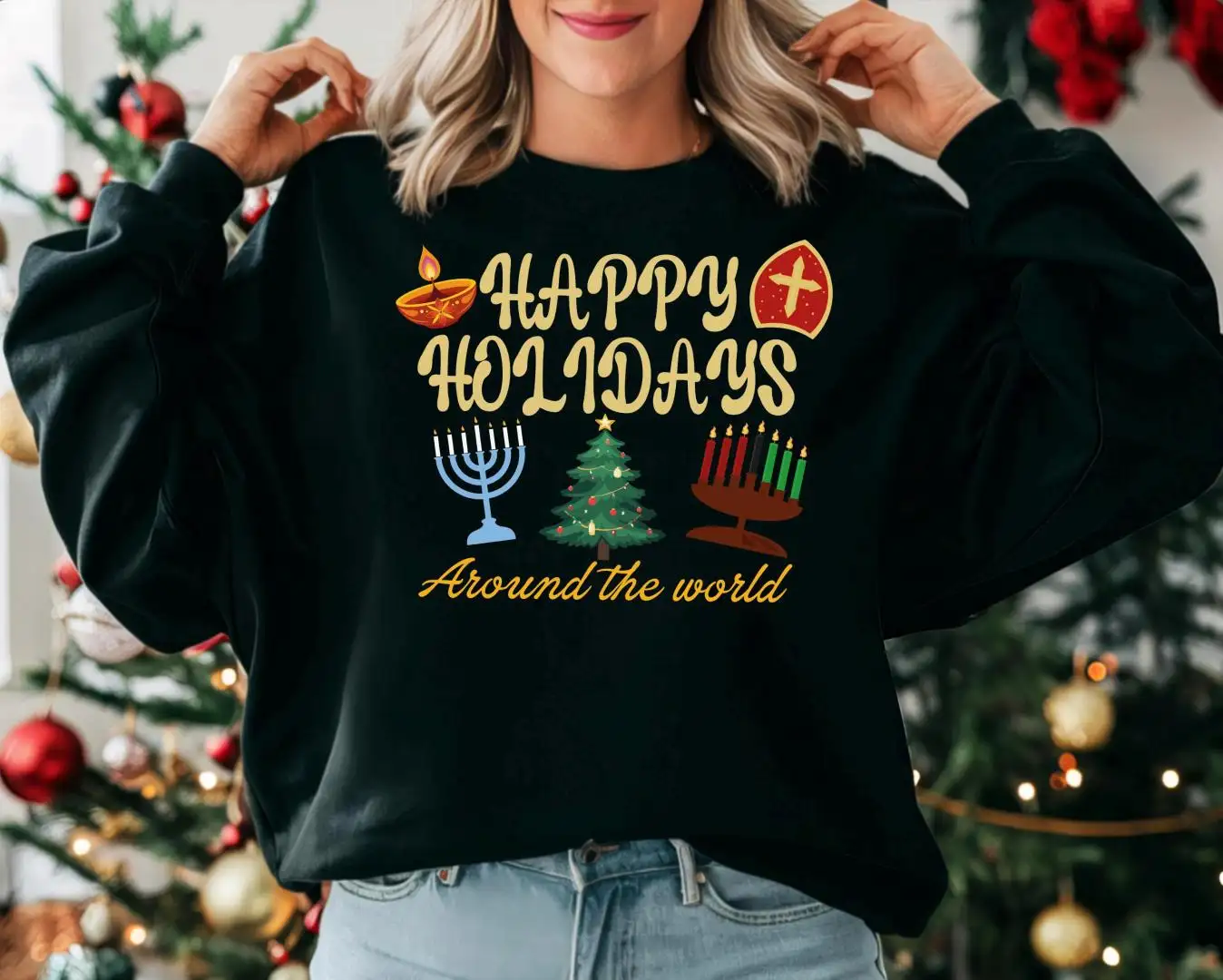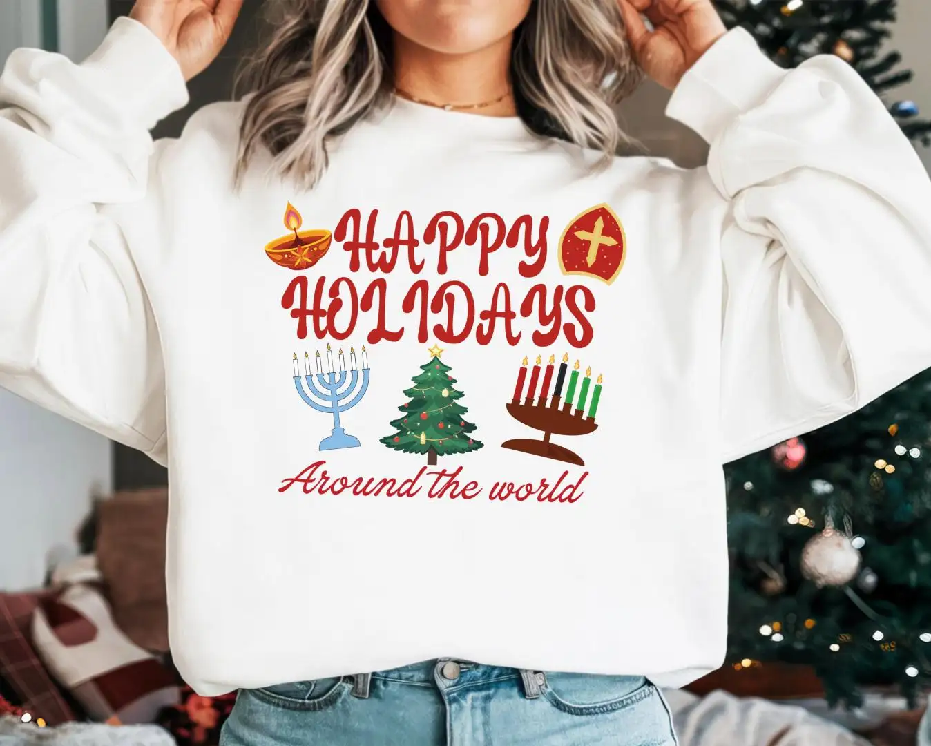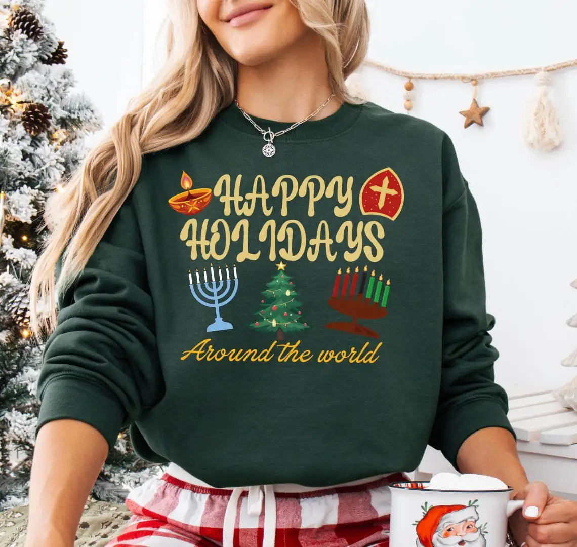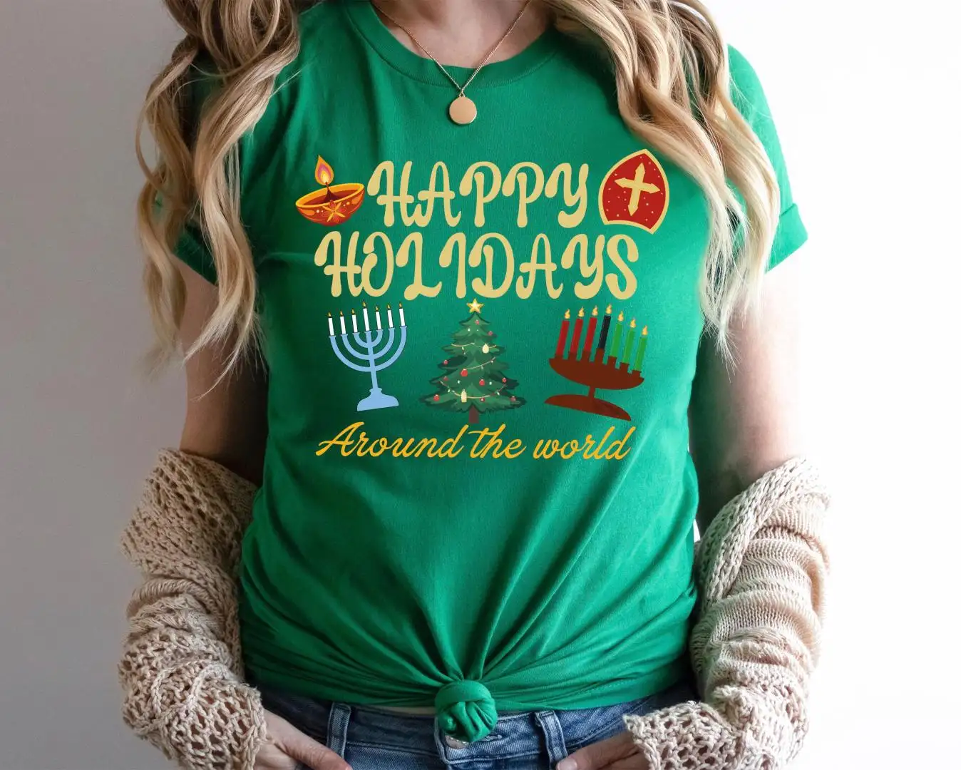 Happy Holidays Around the World Shirt, Happy Hanukkah T-Shirt, Kwanzaa Shirt, Religious Christmas Sweatshirt, Christian Christmas Tee