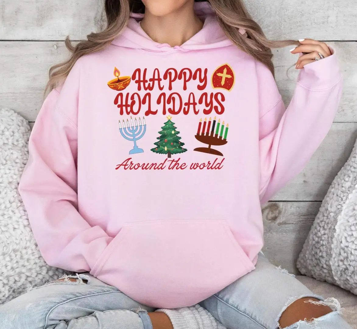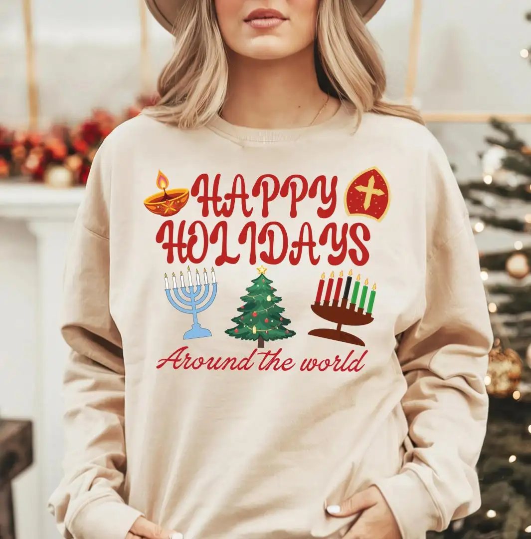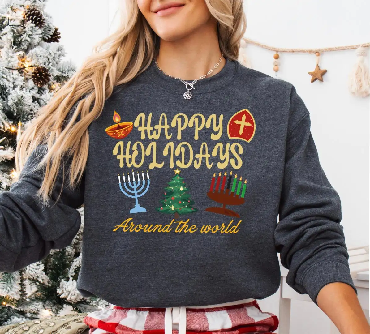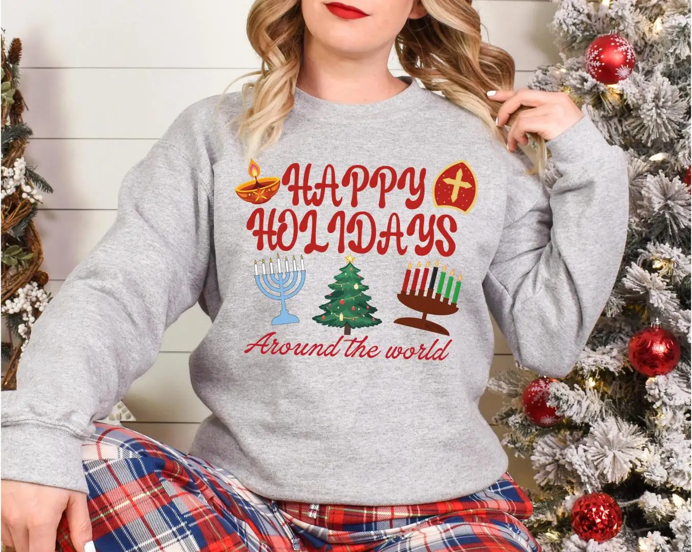 Happy Holidays Around the World Shirt, Happy Hanukkah T-Shirt, Kwanzaa Shirt, Religious Christmas Sweatshirt, Christian Christmas Tee