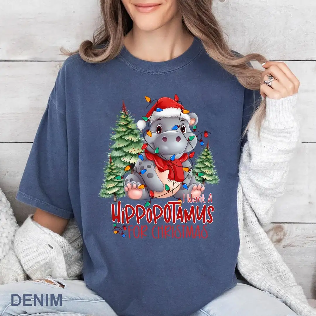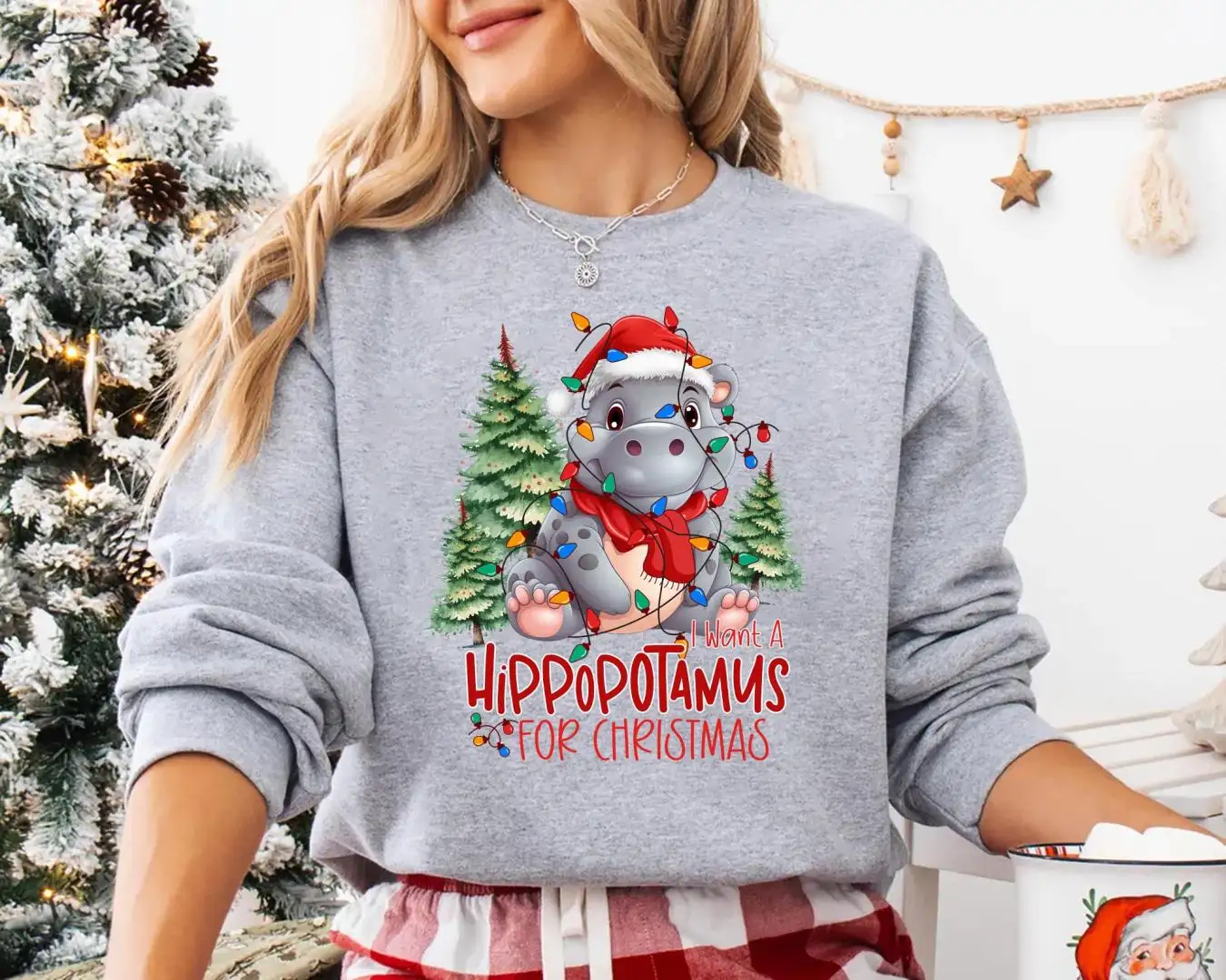 Hippopotamus Christmas Shirt with Lights Cute Holiday Gift