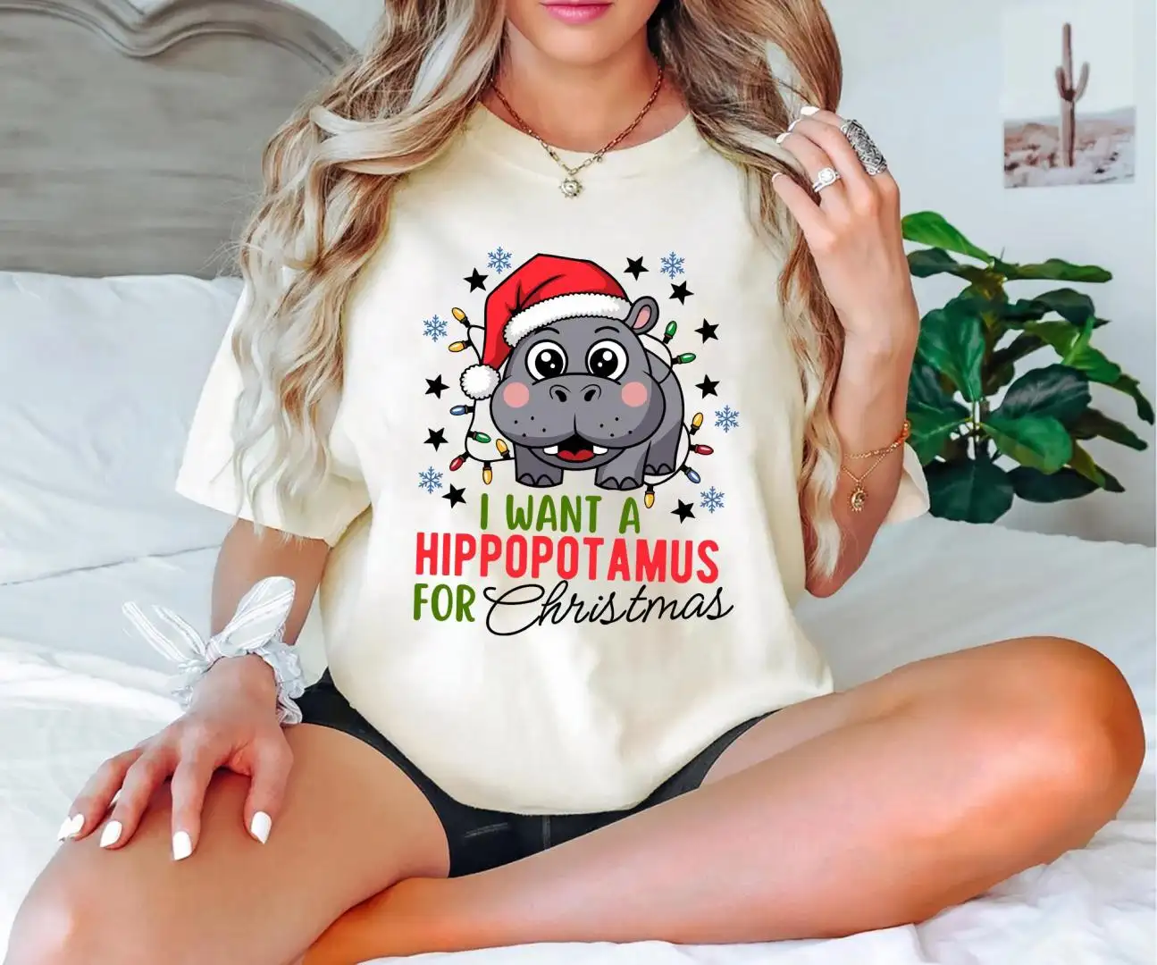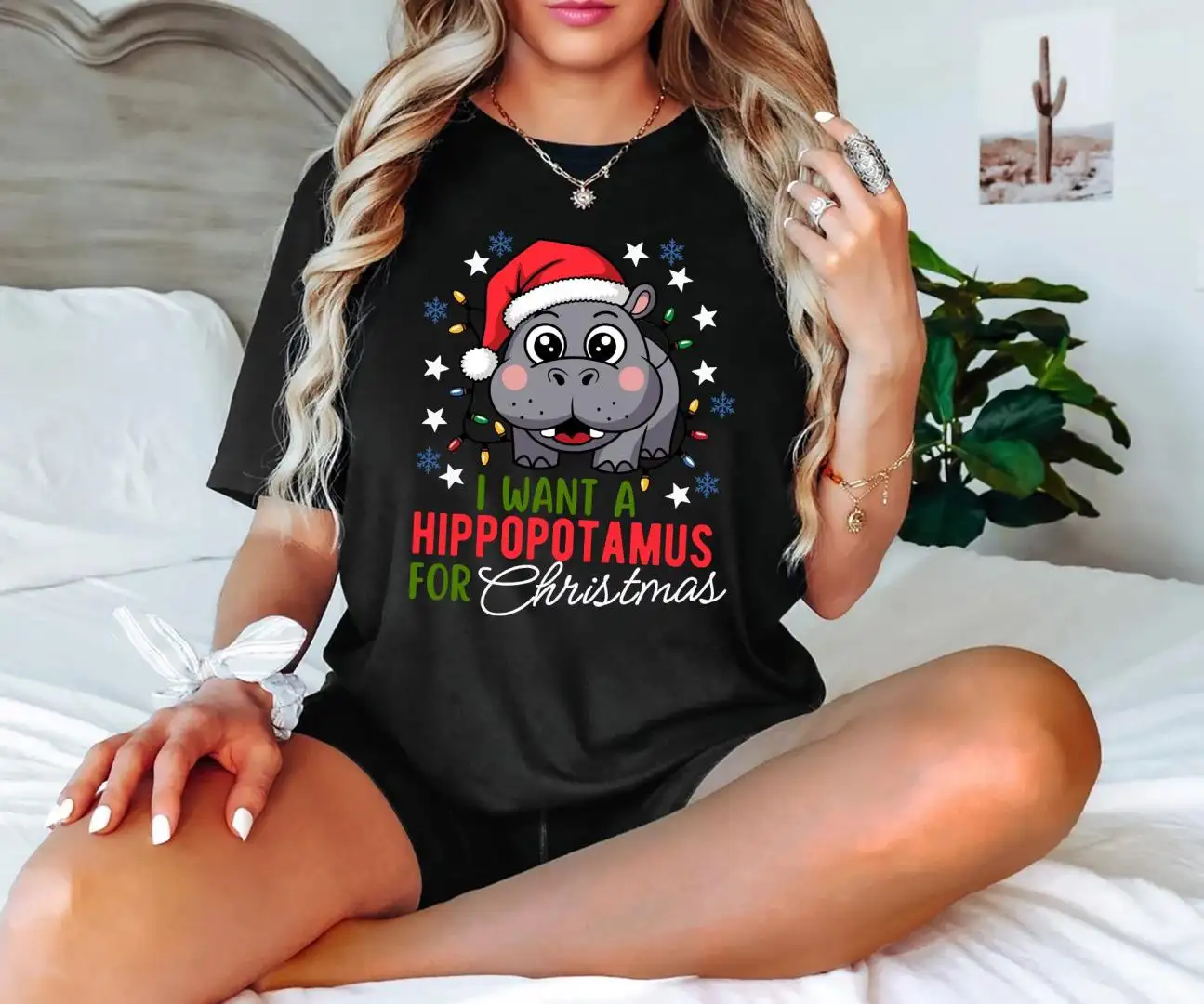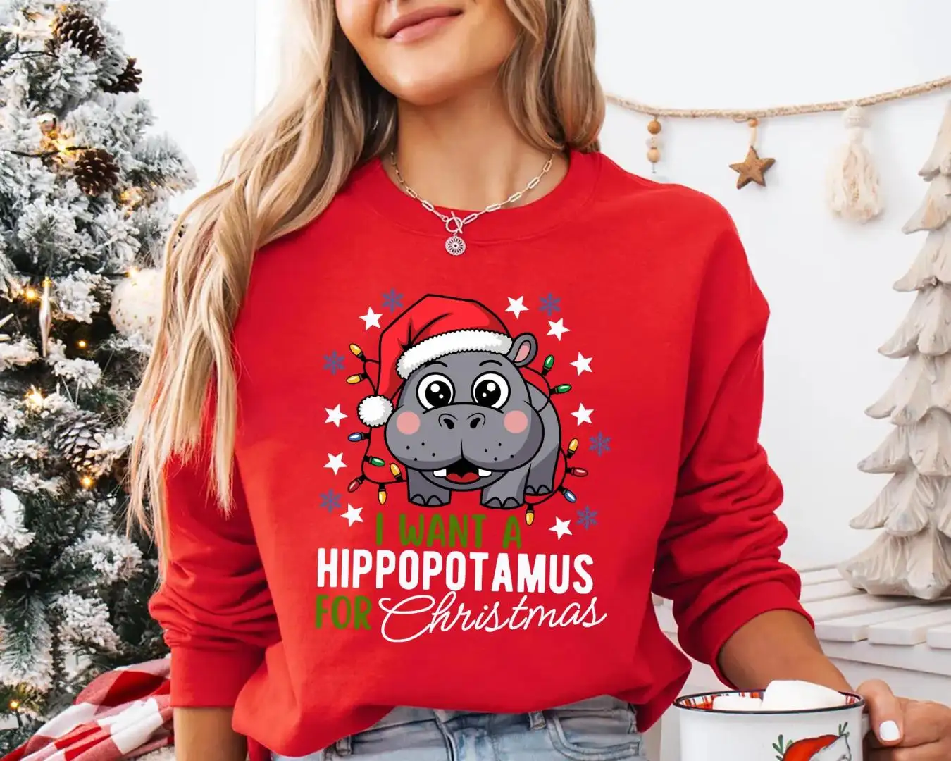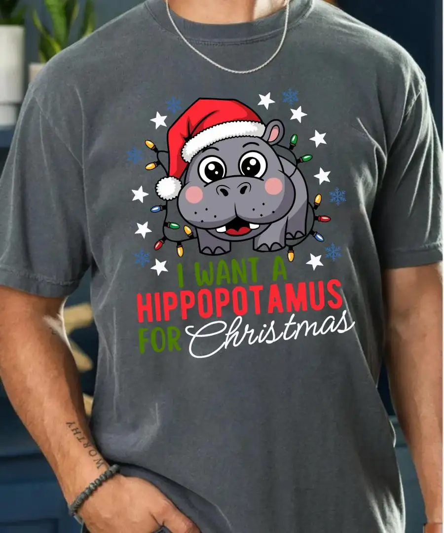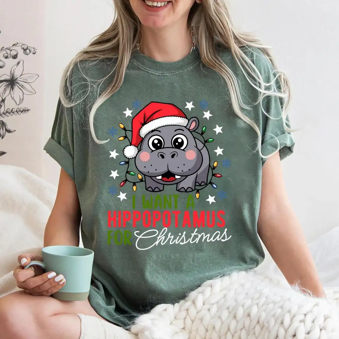 Hippopotamus Christmas Shirt with Lights Cute Holiday Shirt